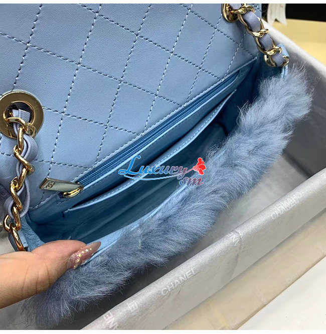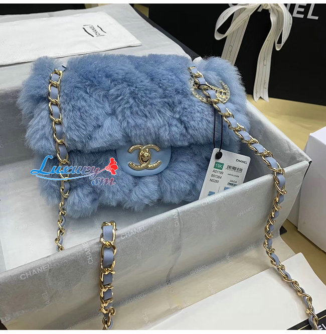 [스페셜오더]CHANEL-AS1199 샤넬 블루 시어링 램스킨 골드메탈 플랩백