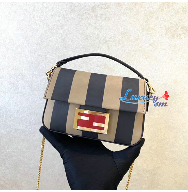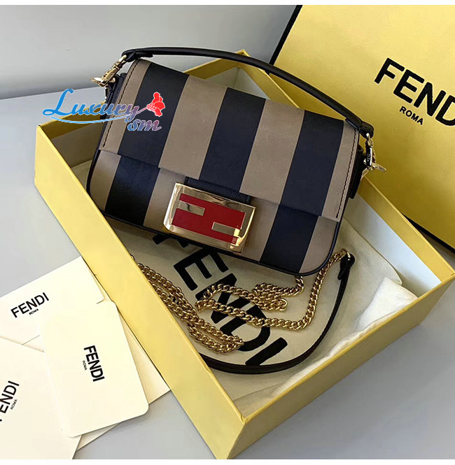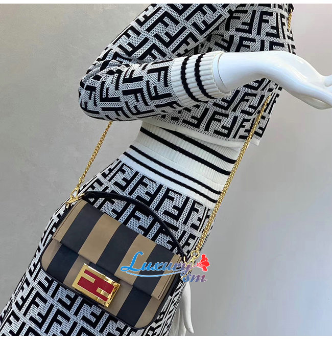 [스페셜오더]FENDI-8BS017 펜디 블랙 페이턴트 가죽 브라운/블랙 페퀸 스트라이프 양가죽 미니 바게트