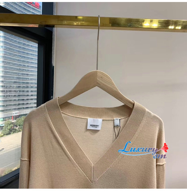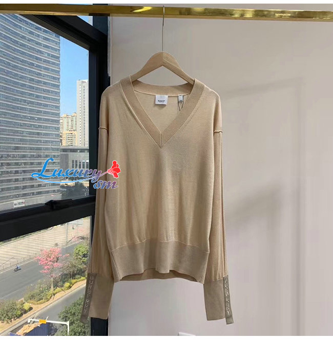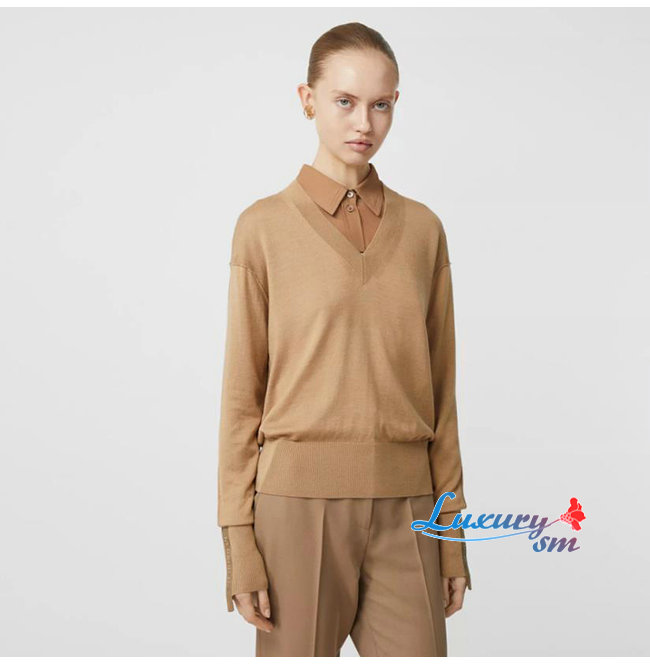 BURBERRY-80211701 버버리 버스킷 로고 디테일 메리노 울 실크 스웨터