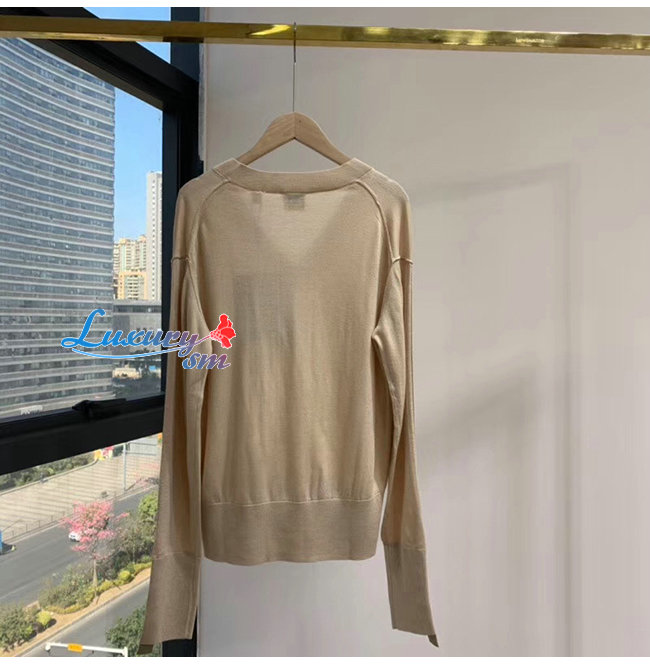 섬세하게 직조된 메리노 울과 실크 혼방 소재의 브이넥