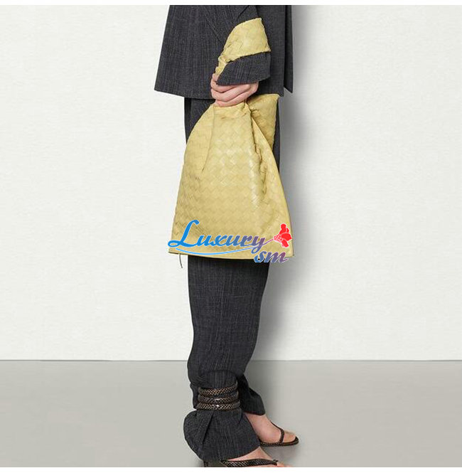 매듭 디테일의 핸들이 돋보이는 우븐 가죽 소재의