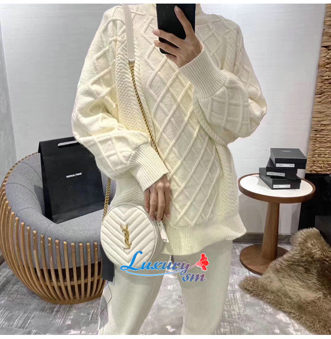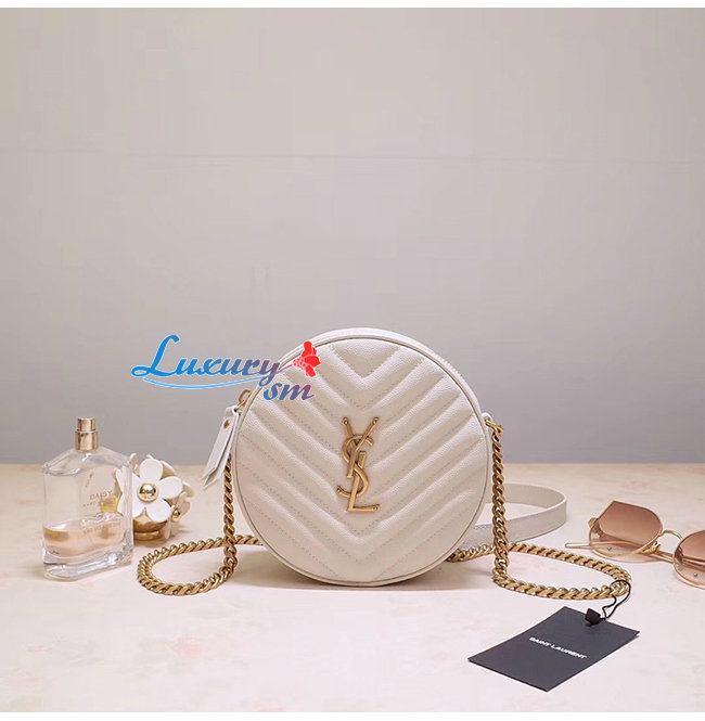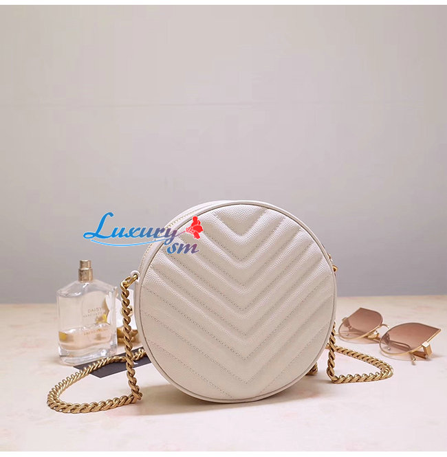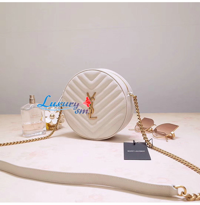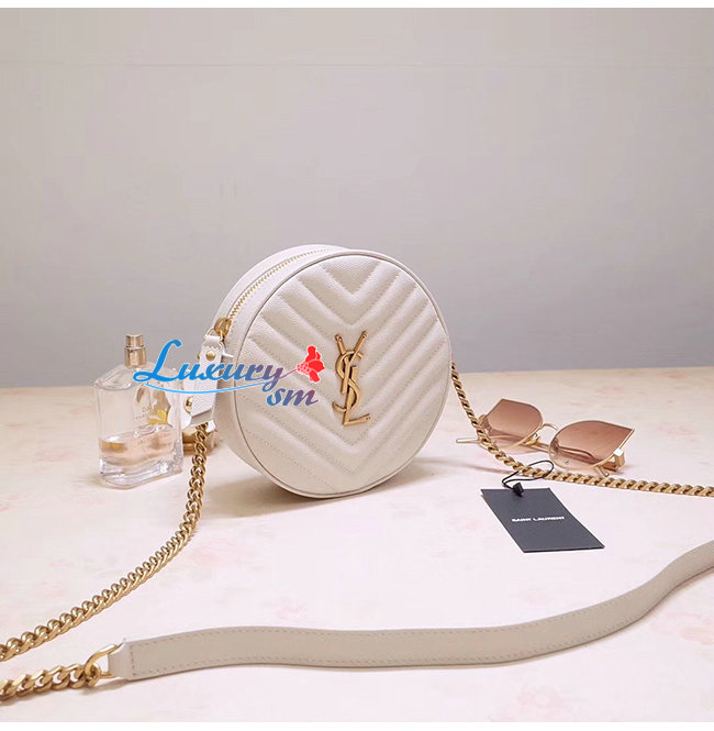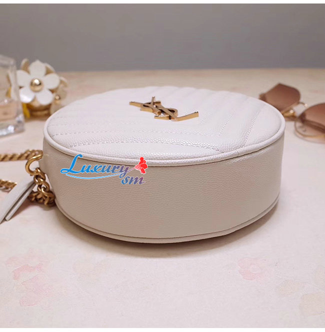 [스페셜오더]SAINT LAURENT-610436 생 로랑 화이트 쉐브론 퀼티드 송아지 가죽 라운드 카메라백