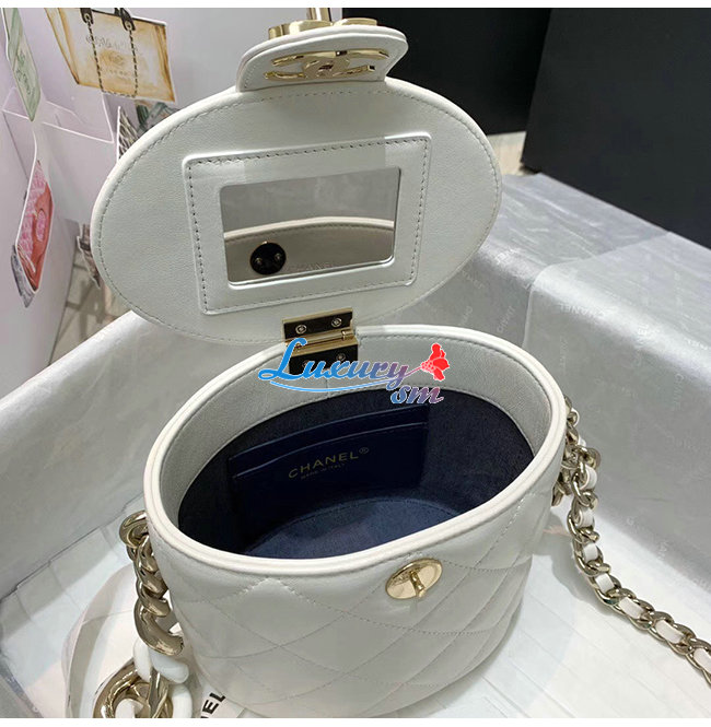 [스페셜오더]CHANEL-AS1355 샤넬 화이트 램스킨 레진 골드메탈 코스메틱 케이스