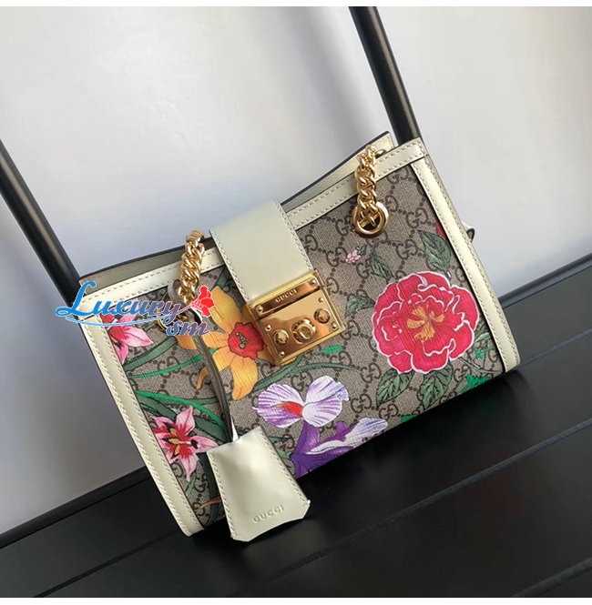 [스페셜오더]GUCCI-498156 9799 구찌 패들락 화이트 GG 플로라 스몰 숄더백