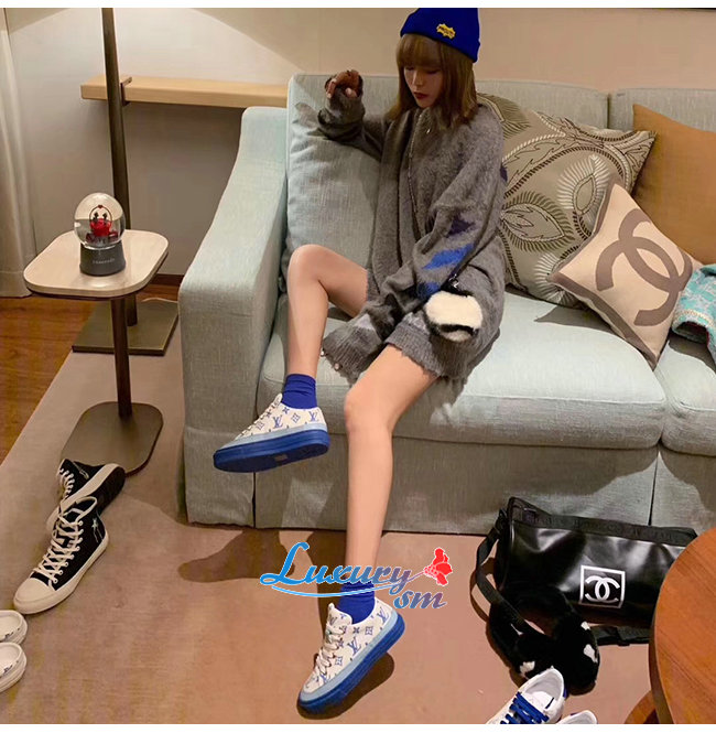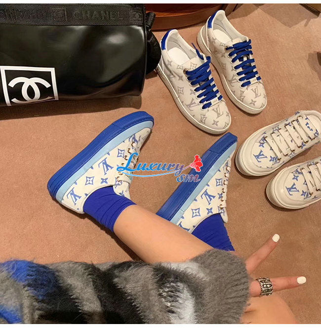 LOUIS VUITTON-1A65TY 루이비통 블루 모노그램 프린트 텍스타일 스텔라 스니커즈