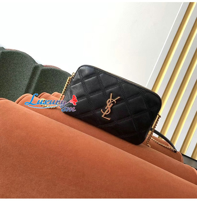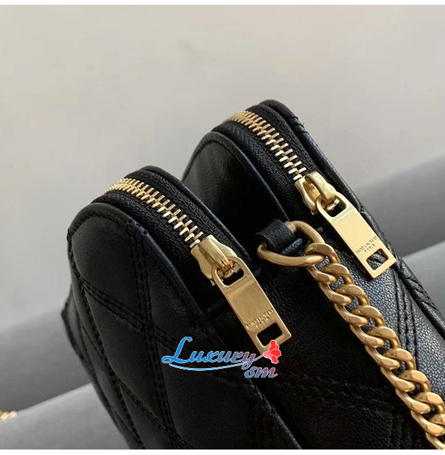 [스페셜오더]SAINT LAURENT-608941 생 로랑 블랙 램스킨 베키 더블 집 파우치