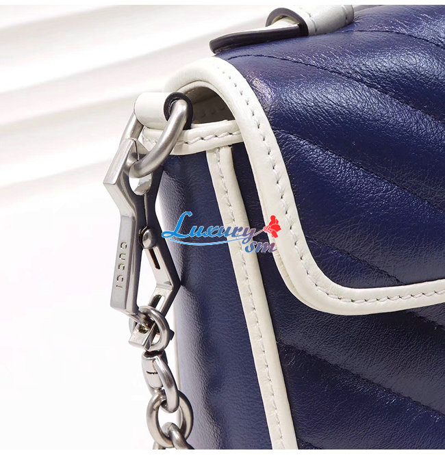 [스페셜오더]GUCCI-583571 4186 구찌 GG 마몽 블루 마틀라세 미니 탑 핸들백