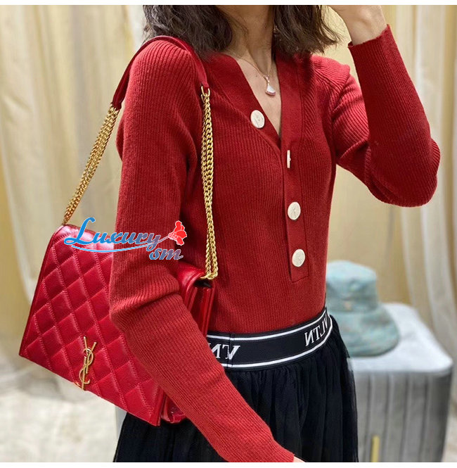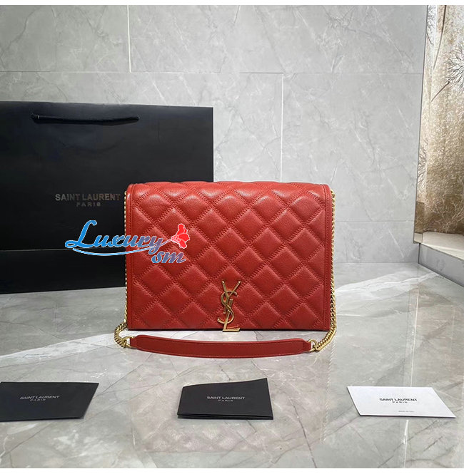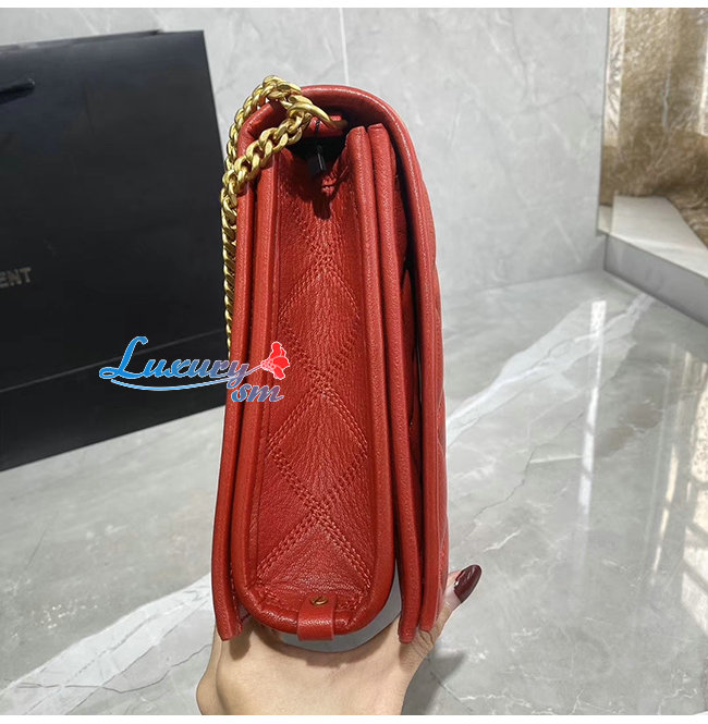 [스페셜오더]SAINT LAURENT-579607 생 로랑 레드 다이아몬드 퀼티드 램스킨 베키 스몰 체인백