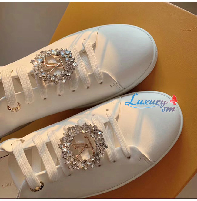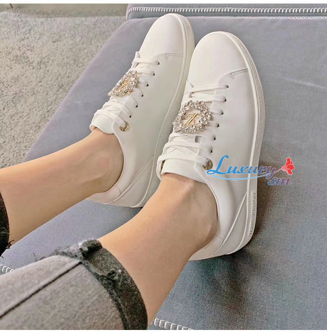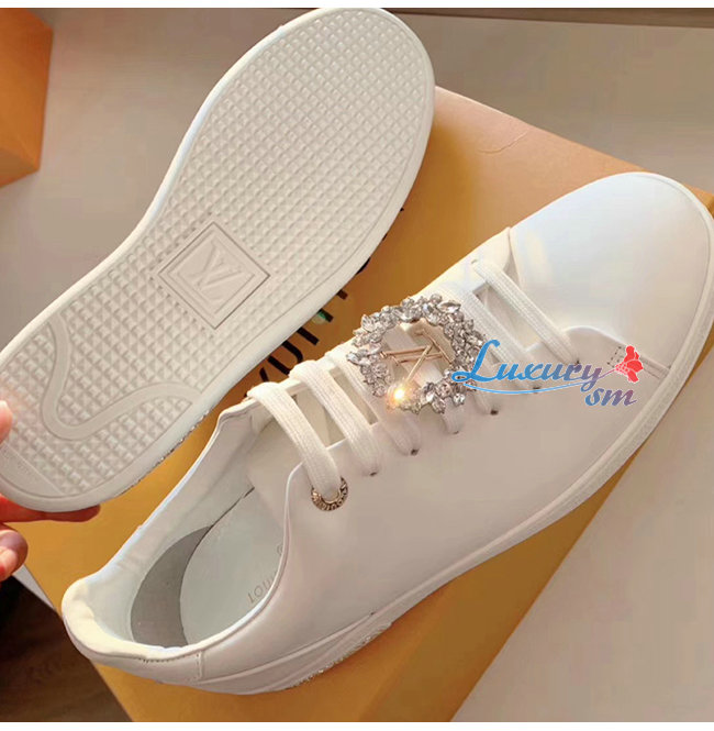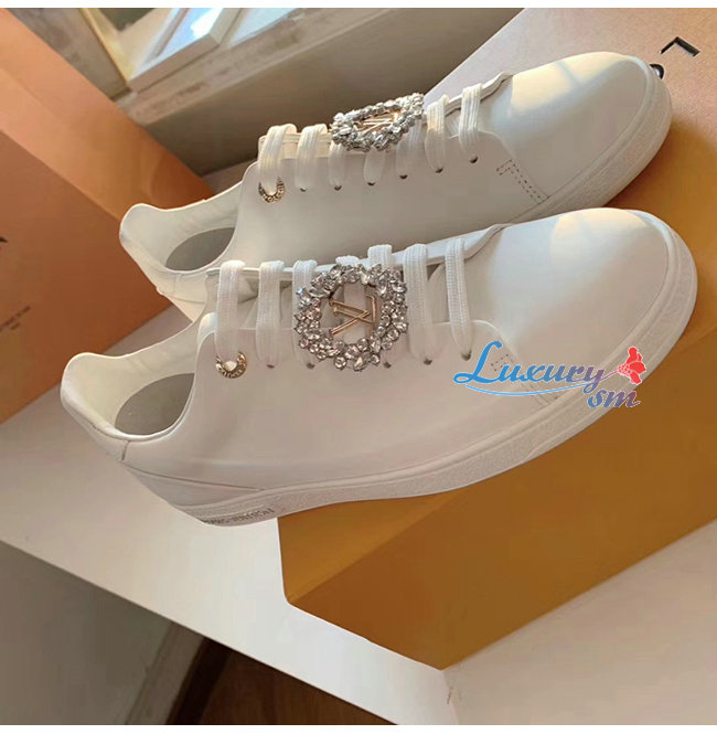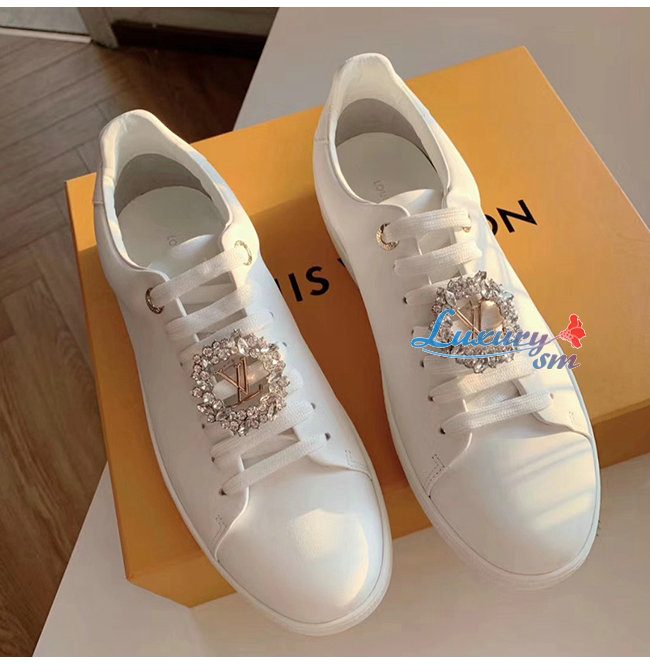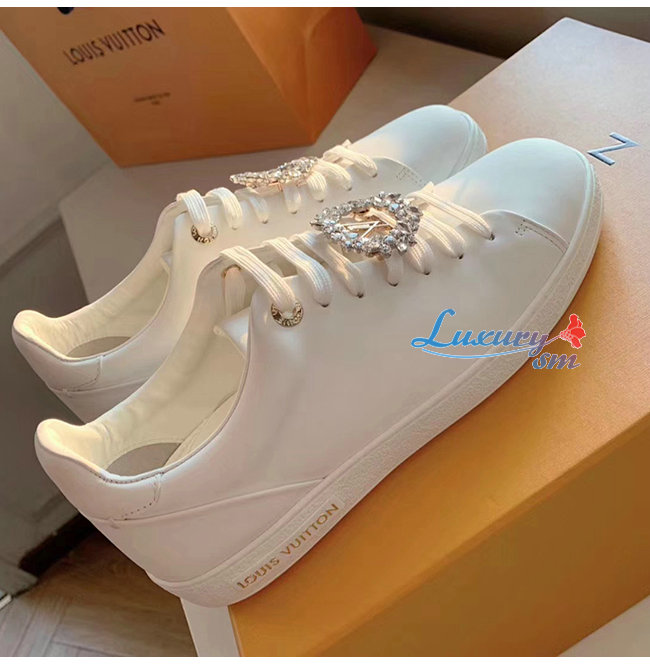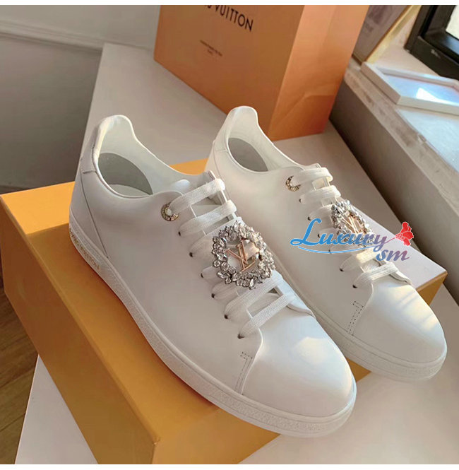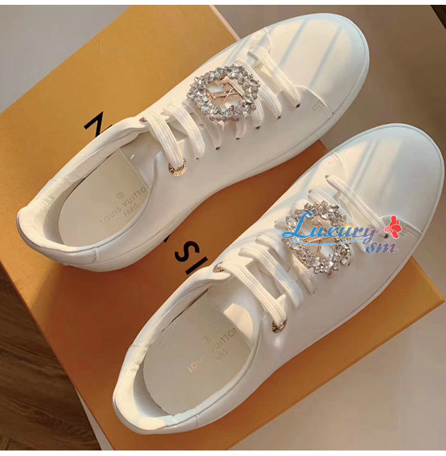 LOUIS VUITTON-1A5MH8 루이비통 화이트 송아지 가죽 크리스탈 장식 프론트로우 스니커즈