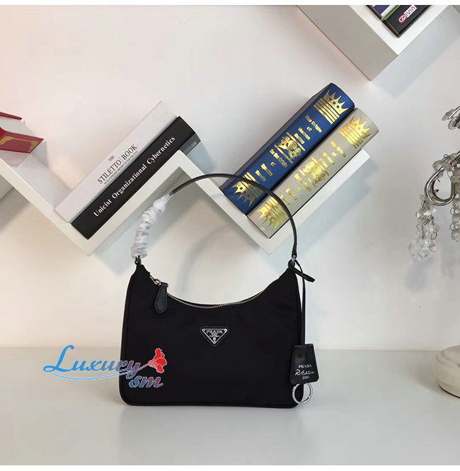 PRADA-1NE204 프라다 블랙 나일론 미니 고프레 호보백