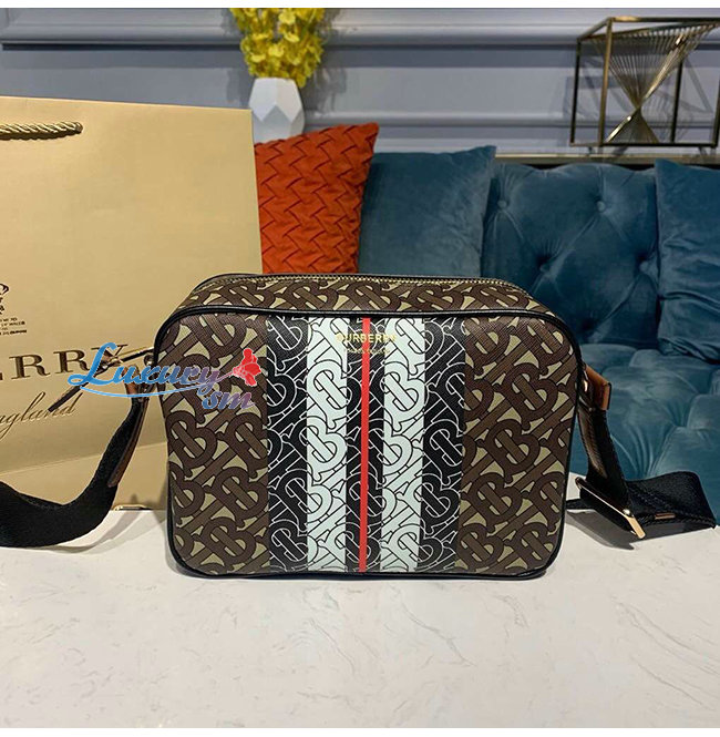 [스페셜오더]BURBERRY-80216611 버버리 모노그램 스트라이프 E-캔버스 노트 크로스바디백