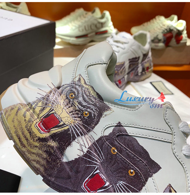 [스페셜오더]GUCCI-576050 9014 구찌 롸이톤 화이트 가죽 타이거 페이스 프린트 스니커즈 남여공용