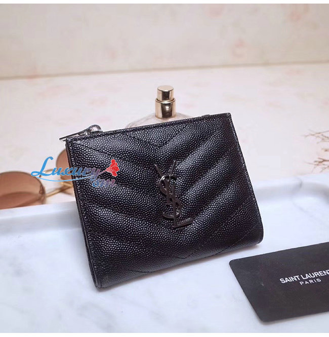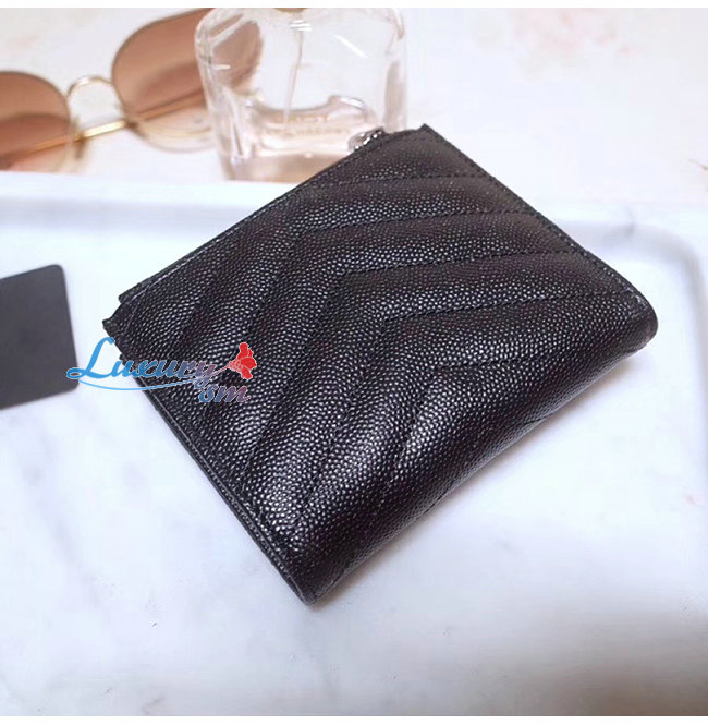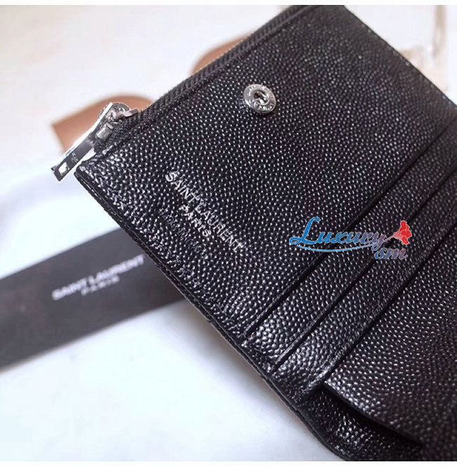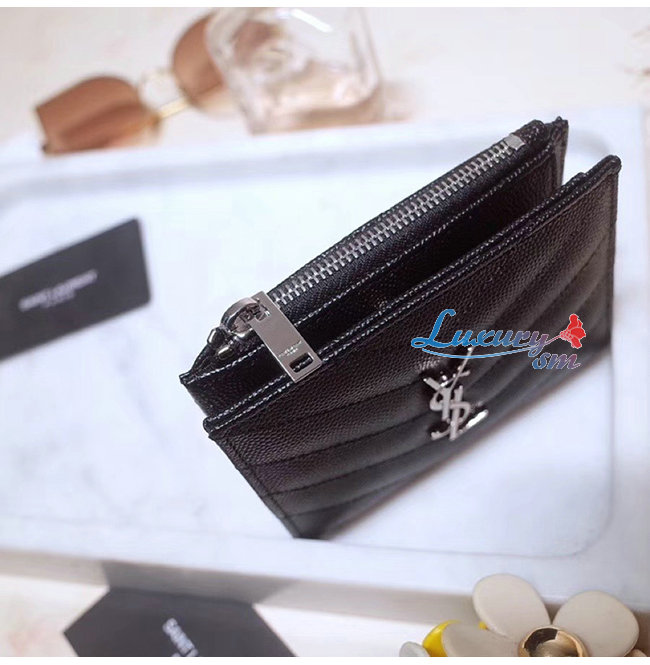 [스페셜오더]SAINT LAURENT-517045 생 로랑 블랙 텍스처드 퀼티드 송아지 가죽 모노그램 지퍼 카드 케이스