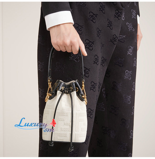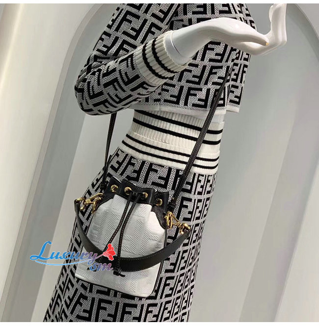[스페셜오더]FENDI-8BS010 펜디 화이트/블랙 더블 F 코튼 송아지 가죽 미니 몬트레조