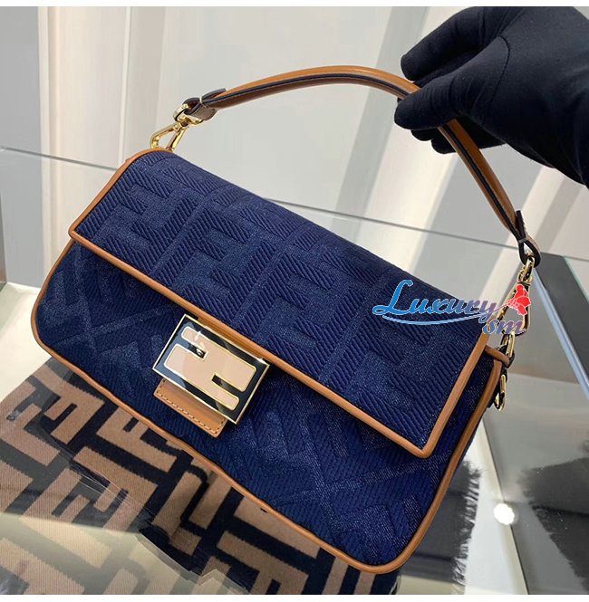 [스페셜오더]FENDI-8BR600 펜디 블루 더블 F 데님 페브릭 바게트 라지