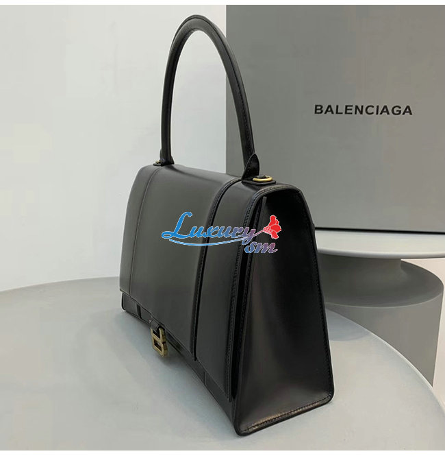 [스페셜오더]BALENCIAGA-592823 발렌시아가 블랙 송아지 가죽 아워글래스 미디엄 탑 핸들백
