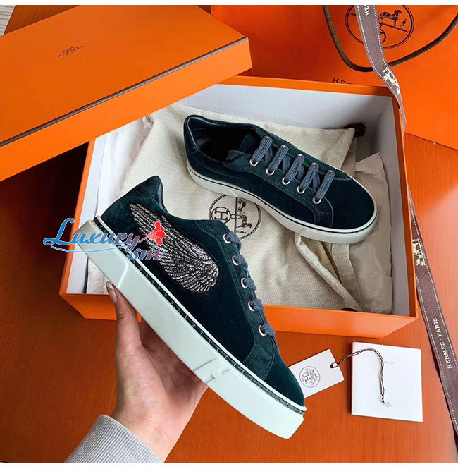 HERMES-H192114 에르메스 피쿡 블루 벨벳 윙 디테일 스니커즈
