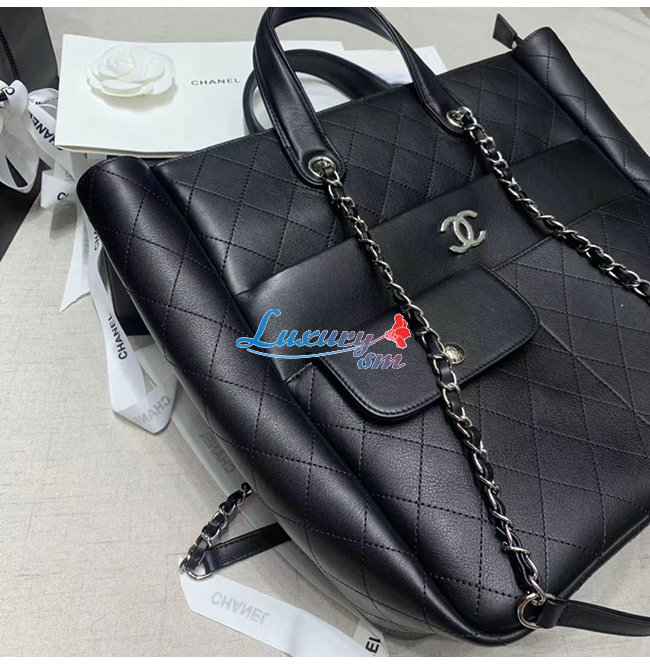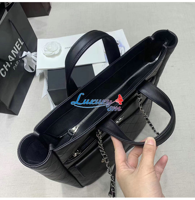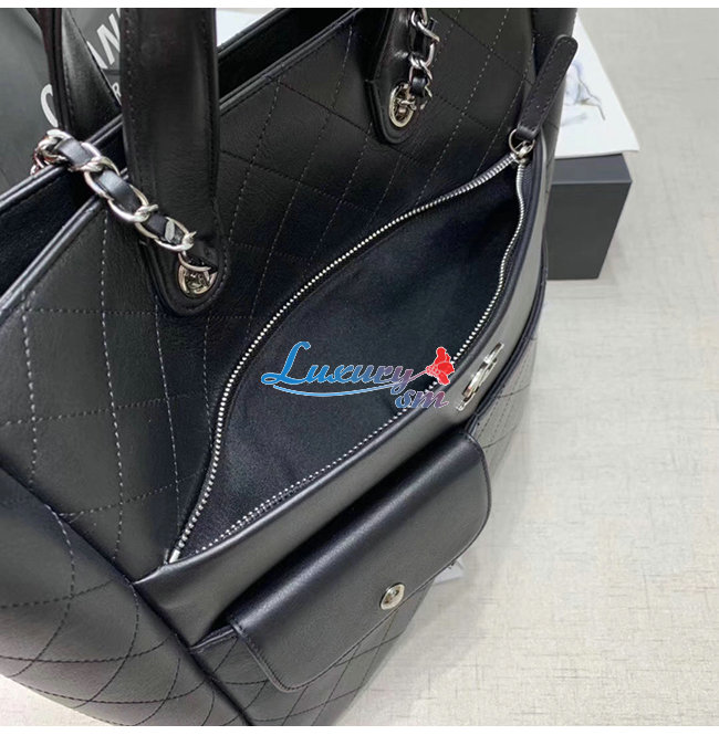 [스페셜오더]CHANEL-AS1299 샤넬 블랙 카프스킨 실버메탈 라지 지퍼 쇼핑백