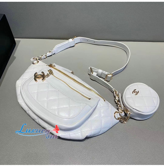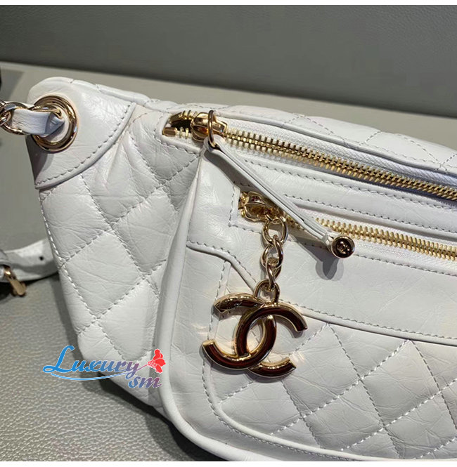 [스페셜오더]CHANEL-AS1077 샤넬 화이트 빈티지 카프스킨 골드메탈 웨이스트백