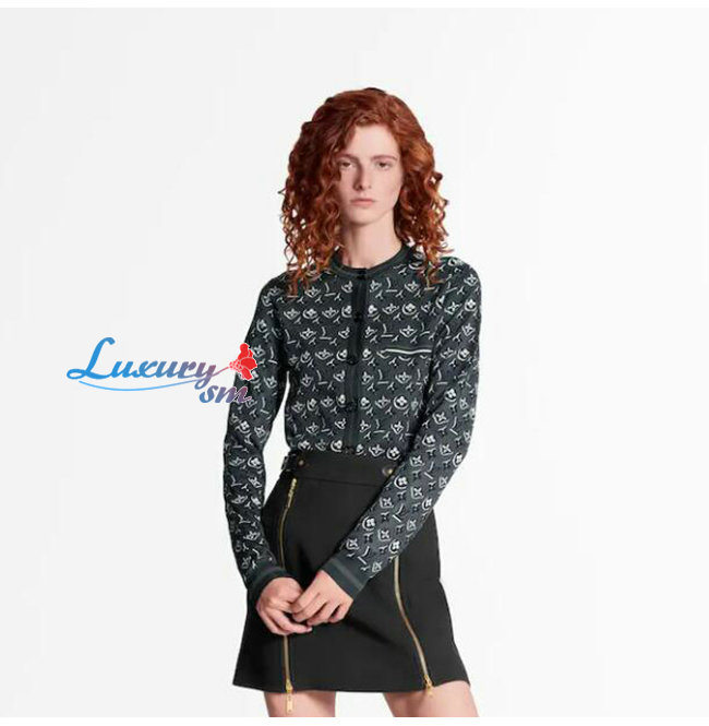 LOUIS VUITTON-1A67K2 루이비통 그레이 모노그램 섀도우 자카드 카디건