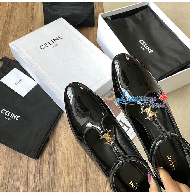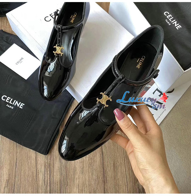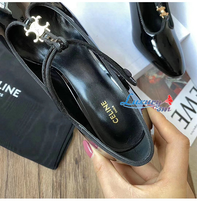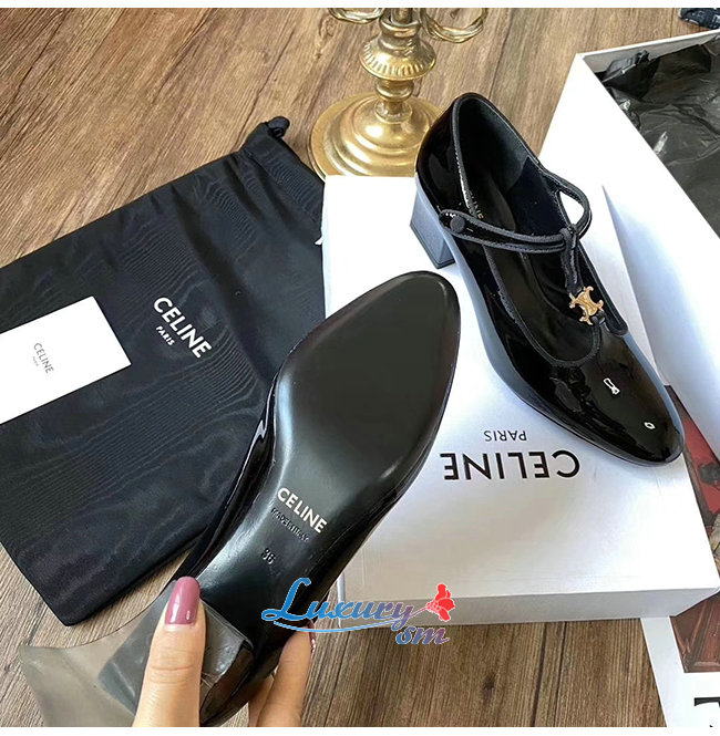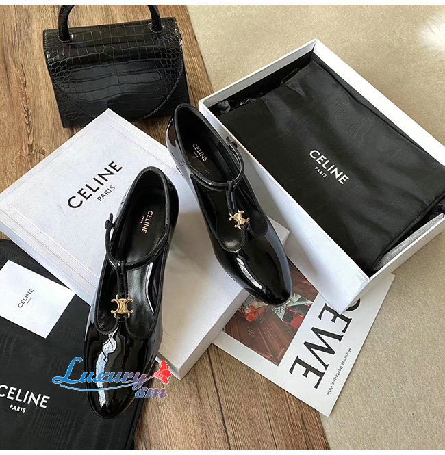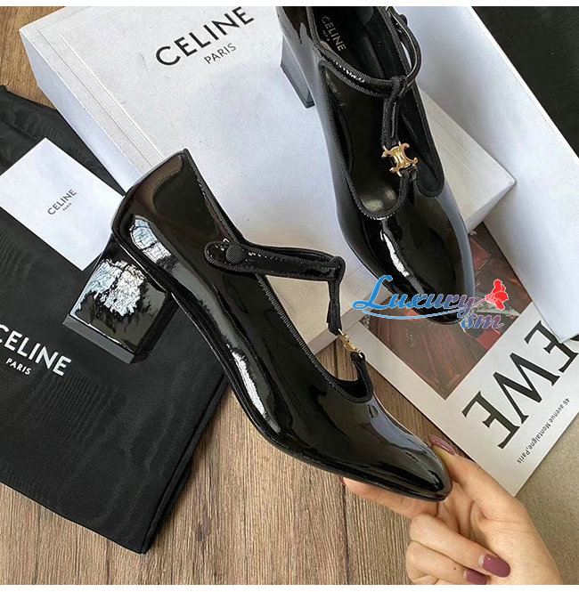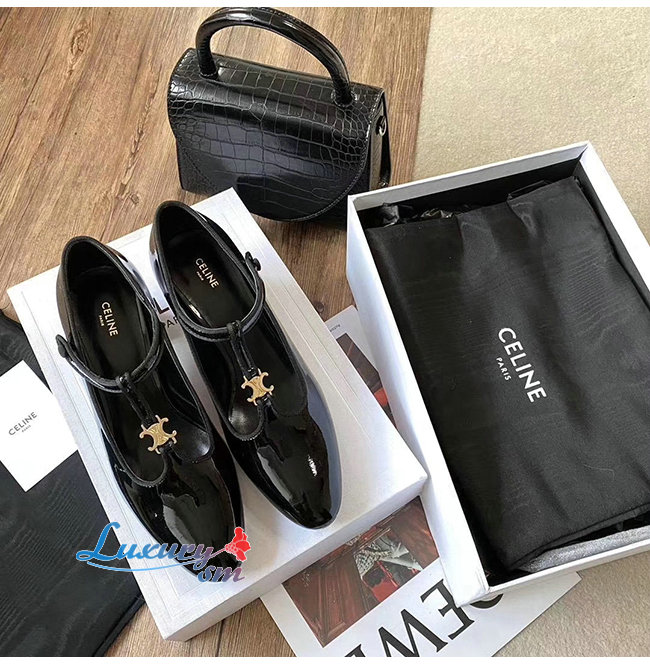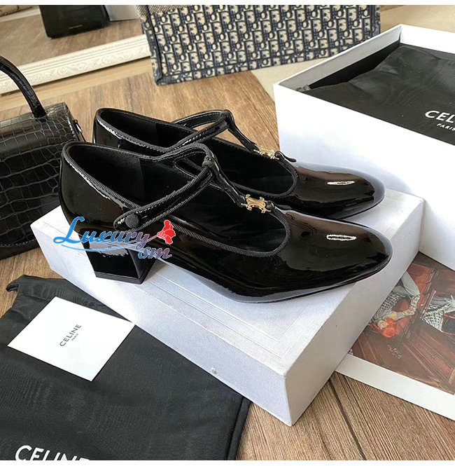 CELINE-333893 셀린느 블랙 페이턴트 카프스킨 T-BAR 펌프스