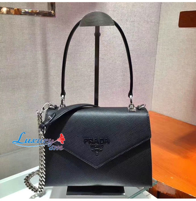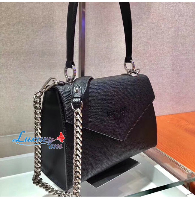 [스페셜오더]PRADA-1BA186 프라다 블랙 사피아노 가죽 모노크롬 백