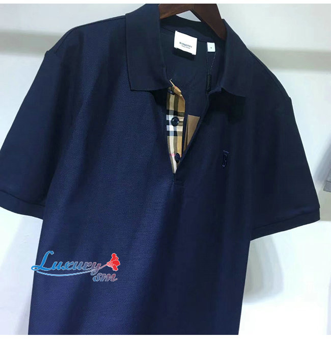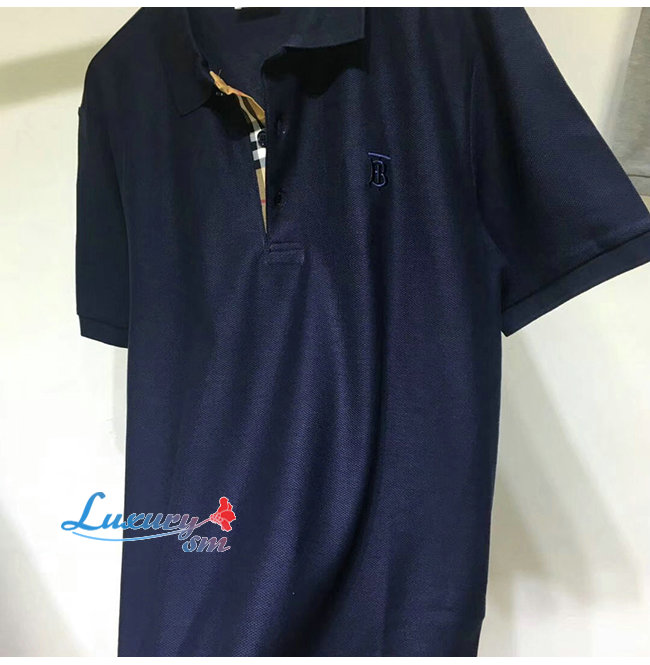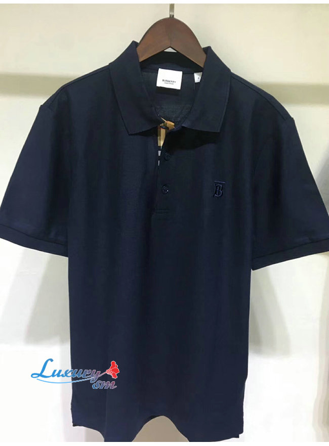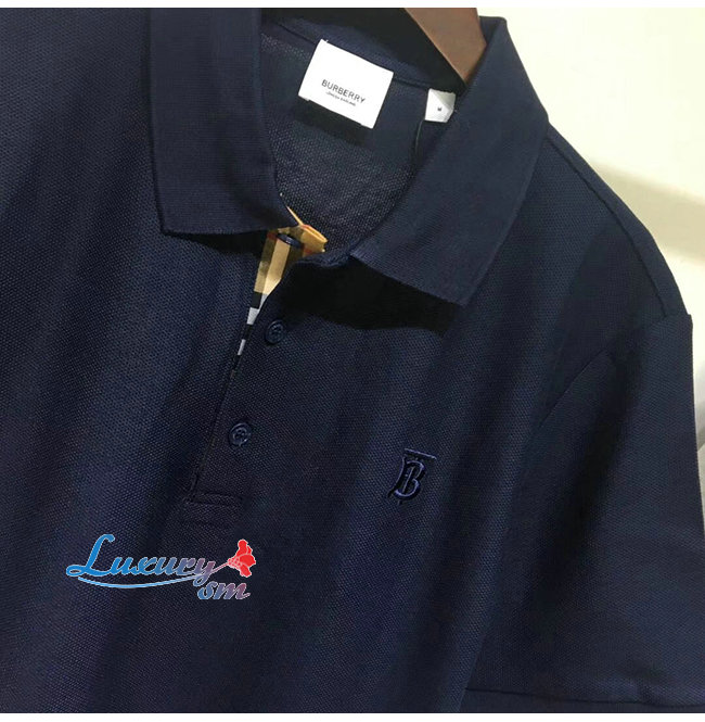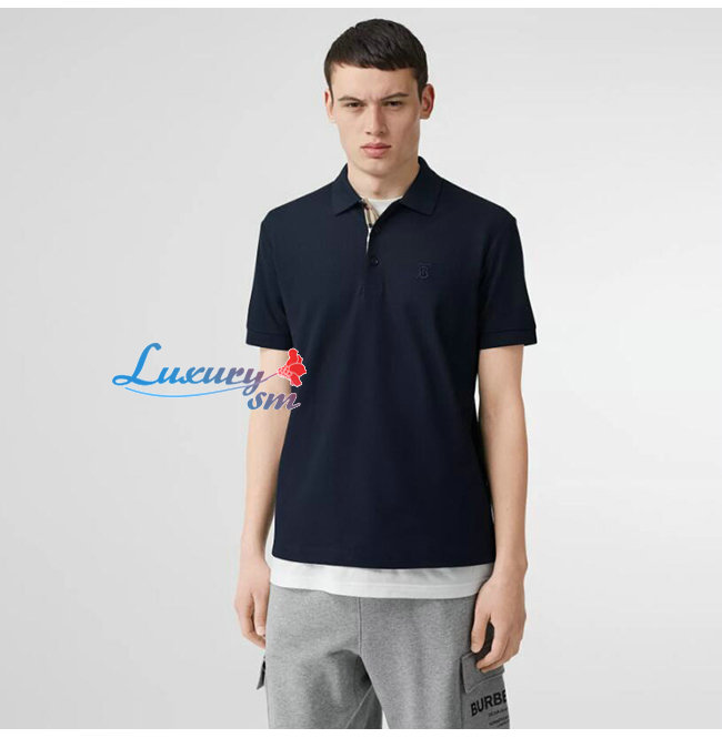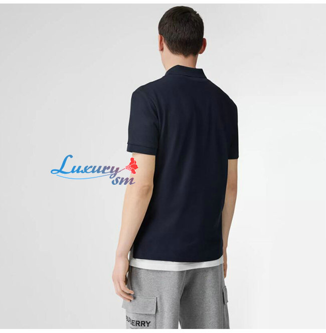 BURBERRY-80140041 버버리 네이비 코튼 모노그램 모티프 피케 폴로셔츠