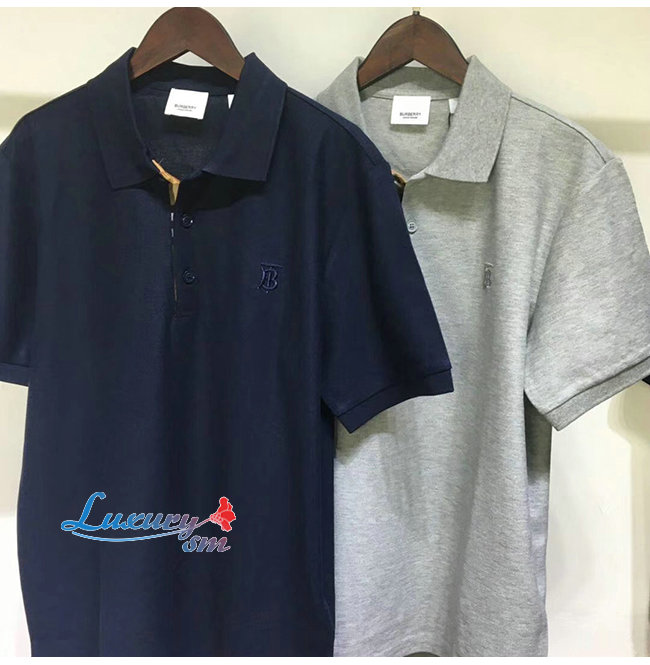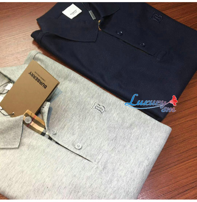 BURBERRY-80140061 버버리 그레이 코튼 모노그램 모티프 피케 폴로셔츠