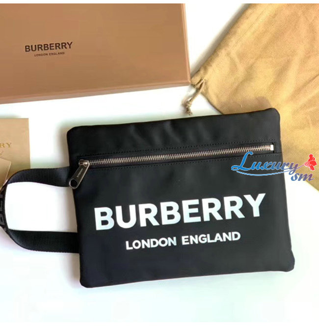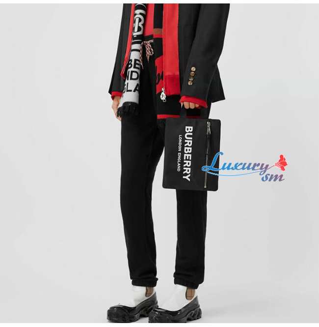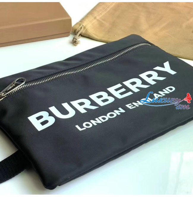 [스페셜오더]BURBERRY-80181471 버버리 블랙 로고 프린트 ECONYL® 포트레이트 파우치