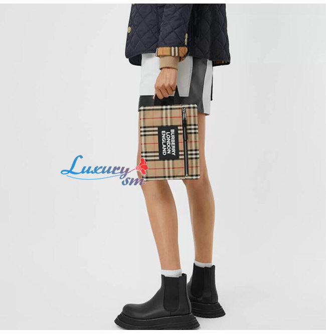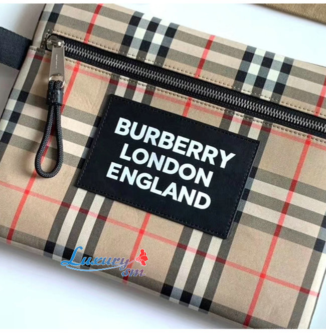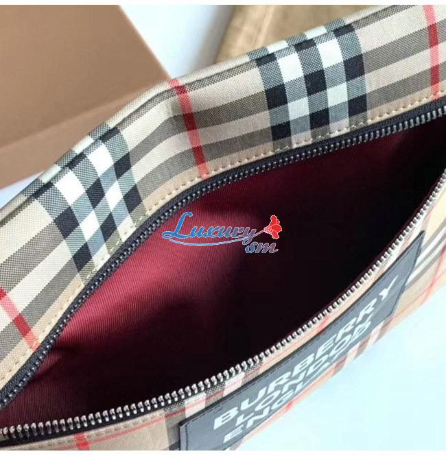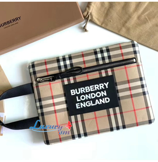 [스페셜오더]BURBERRY-80174831 버버리 베이지/블랙 로고 디테일 빈티지 포트레이트 파우치
