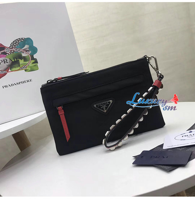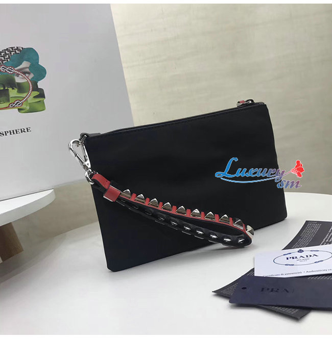 [스페셜오더]PRADA-1NH018 프라다 블랙 나일론 스터드 장식 파우치