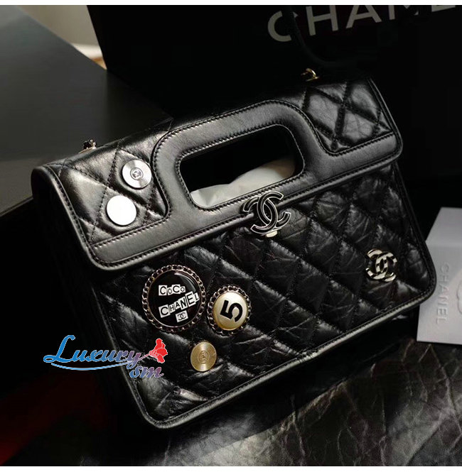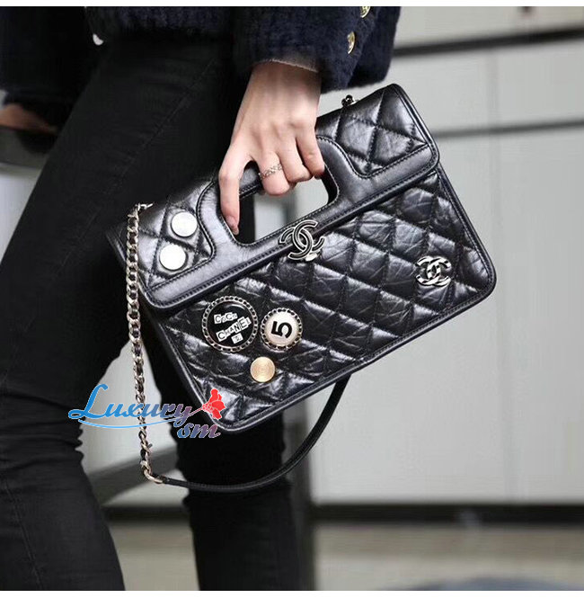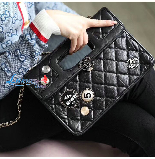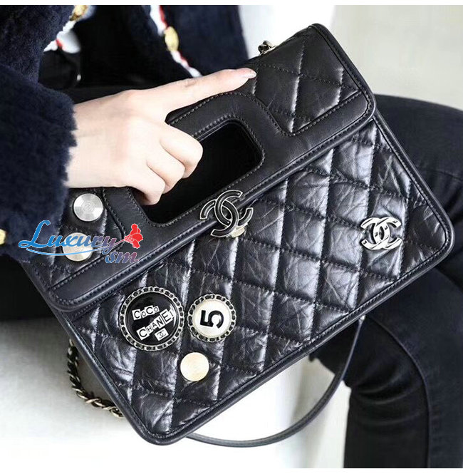 [스페셜오더]CHANEL-AS1430 샤넬 블랙 빈티지 카프스킨 참 장식 골드메탈 플랩백