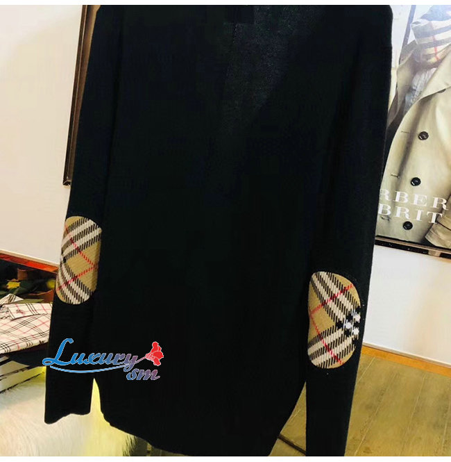 BURBERRY-80170121 버버리 블랙 빈티지 체크 디테일 메리노 울 카디건