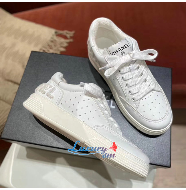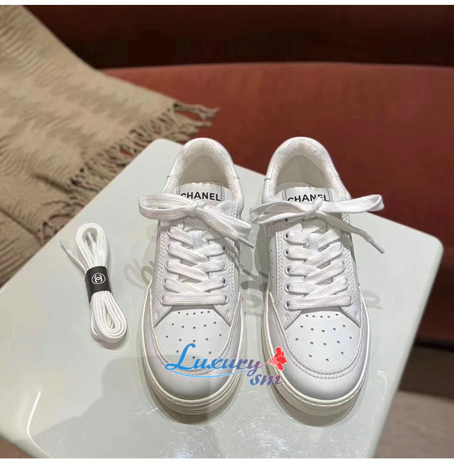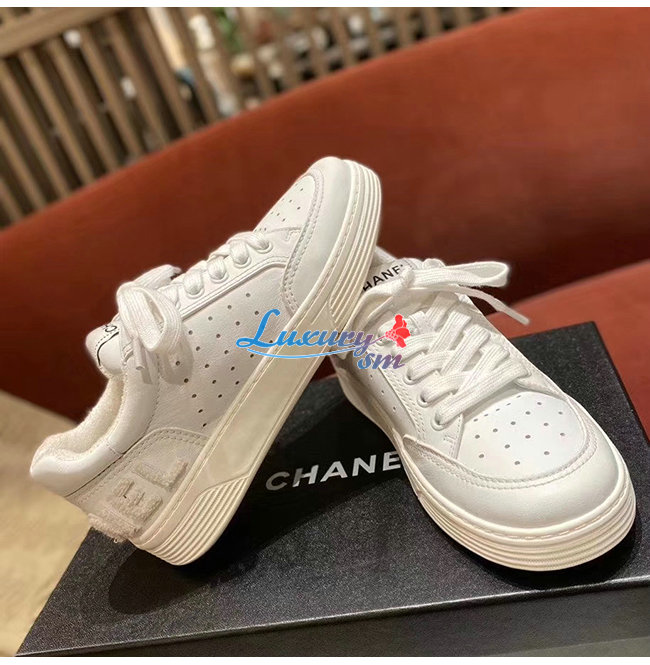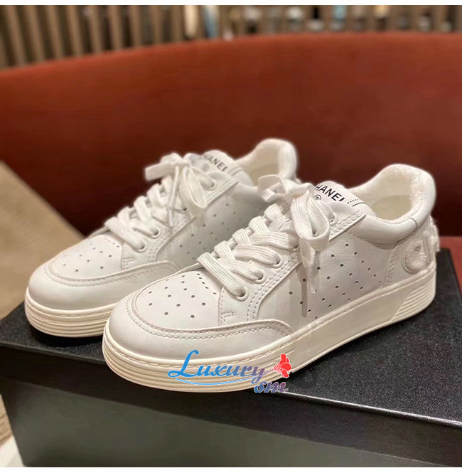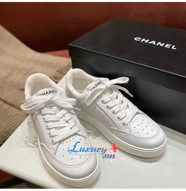 CHANEL-G35934 샤넬 화이트 카프스킨 스니커즈