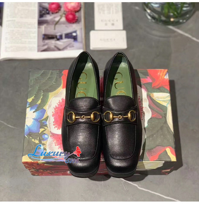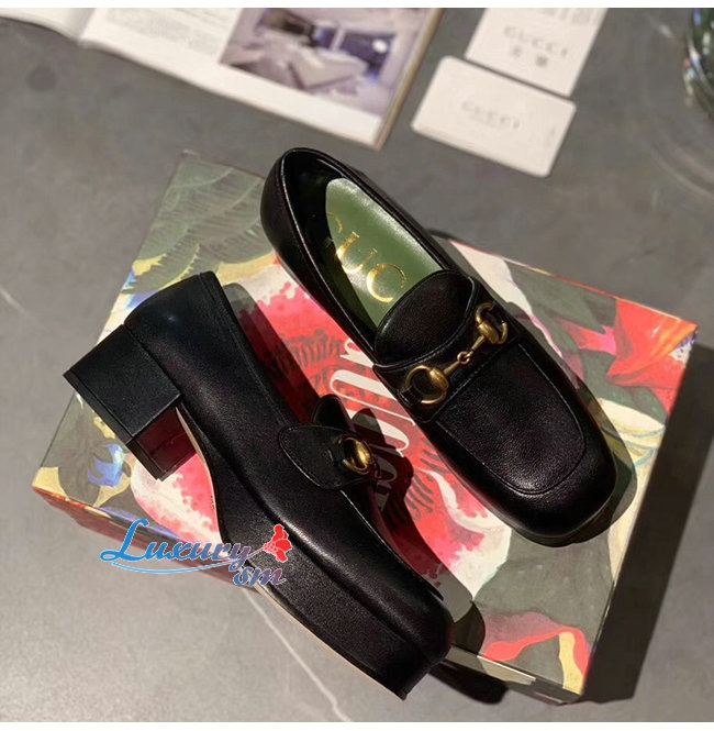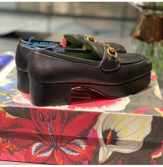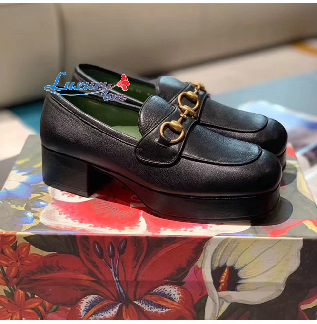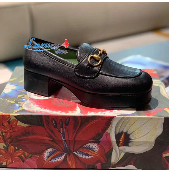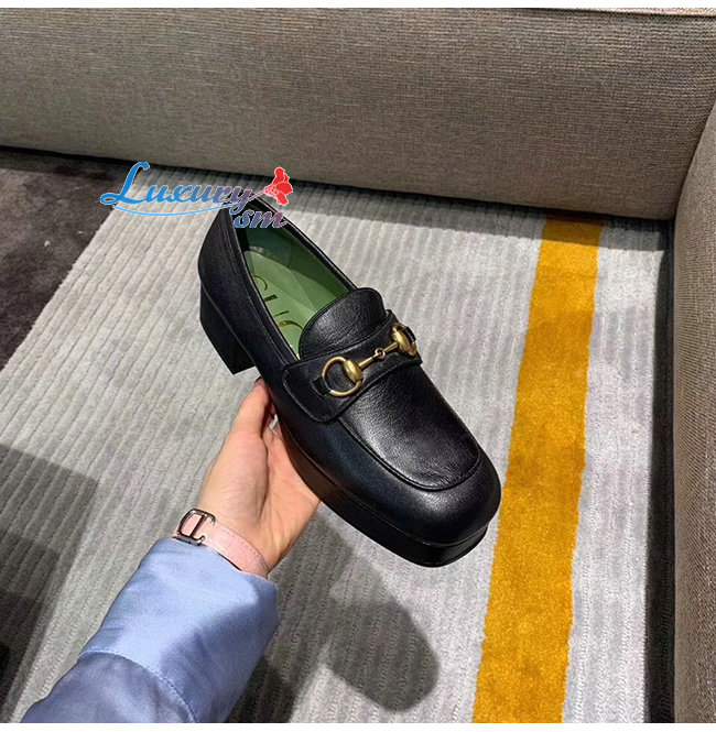 [스페셜오더]GUCCI-565365 1000 구찌 블랙 가죽 홀스빗 디테일 플랫폼 로퍼
