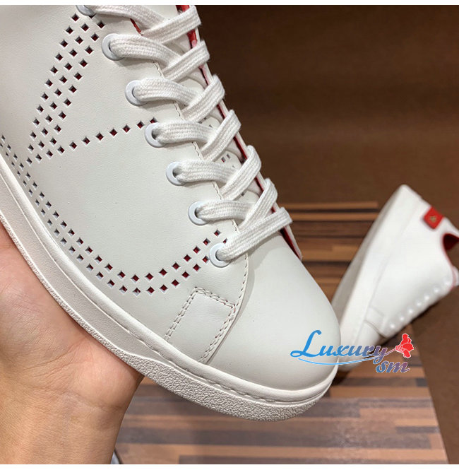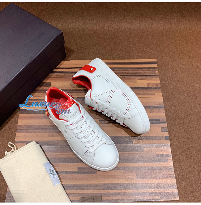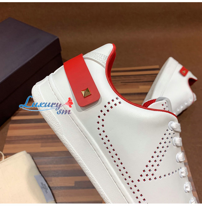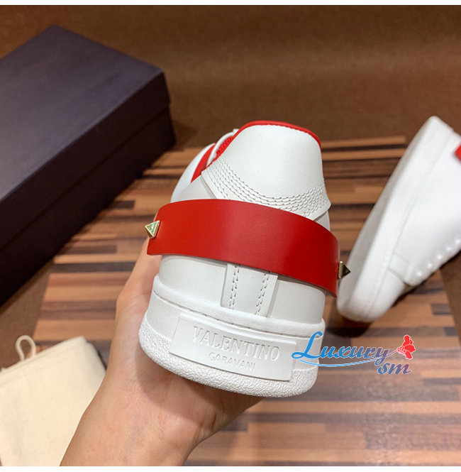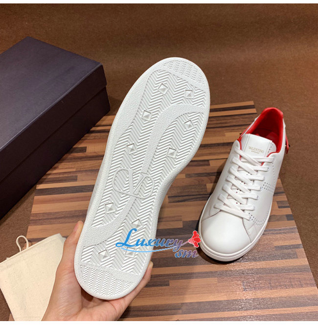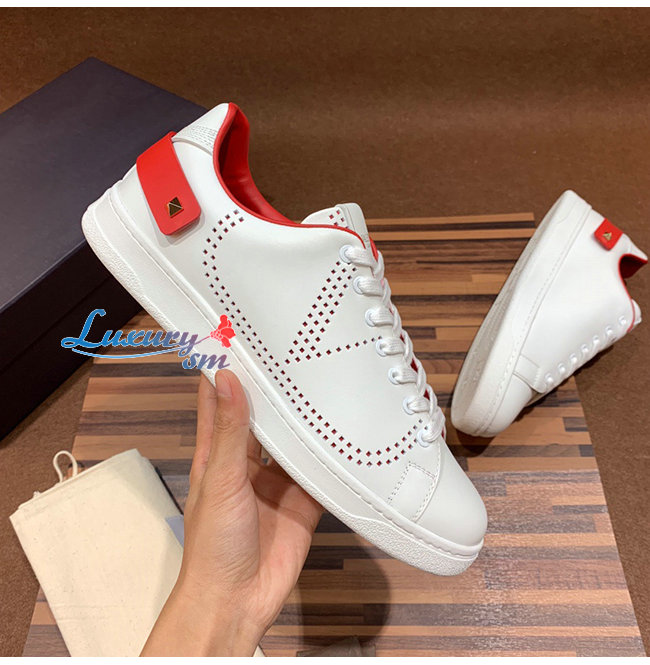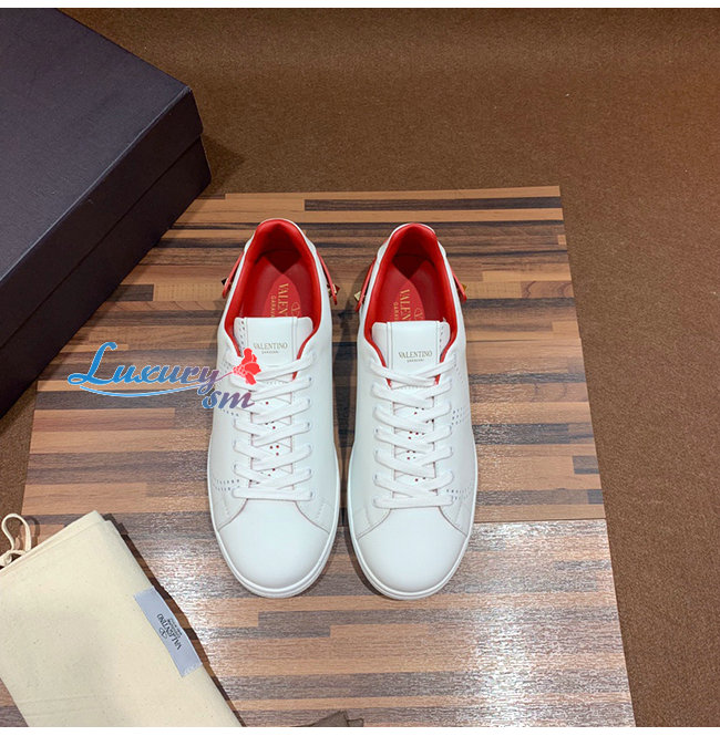 VALENTINO-TY2S0C0 발렌티노 화이트/루주 퓌르 송아지 가죽 VLOGO 디테일 BACKNET 스니커즈 남여공용