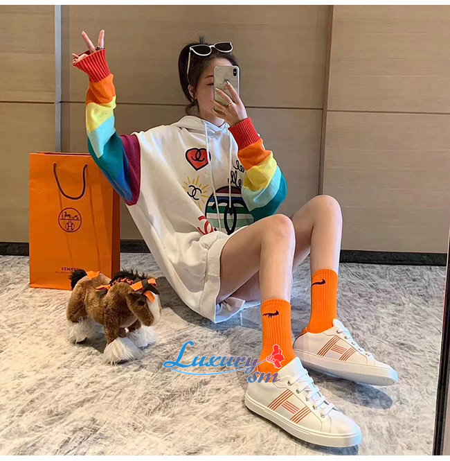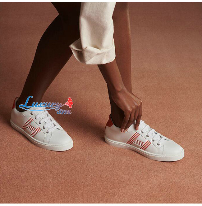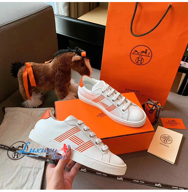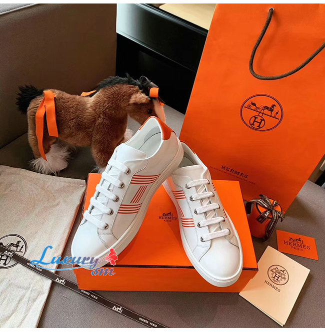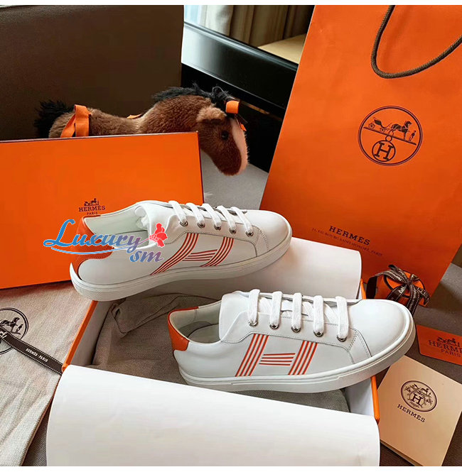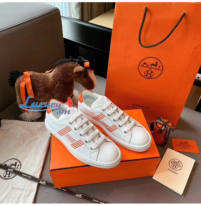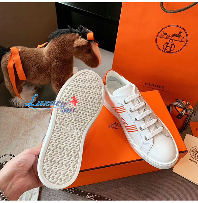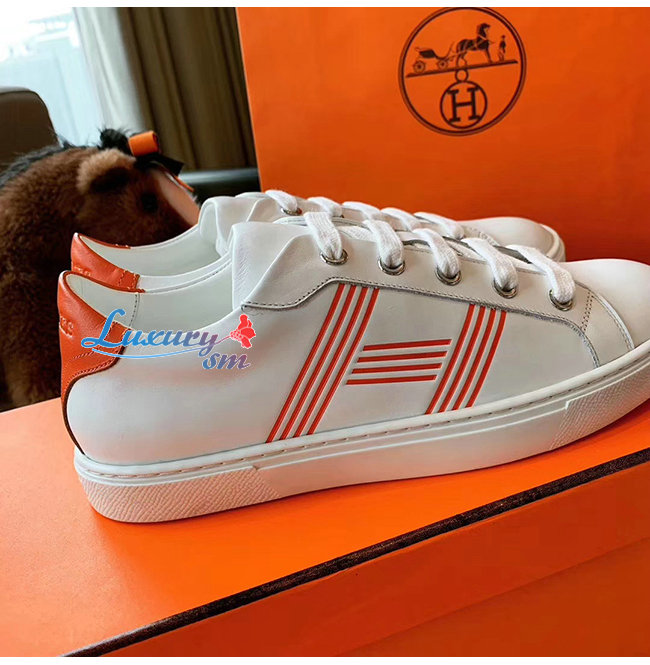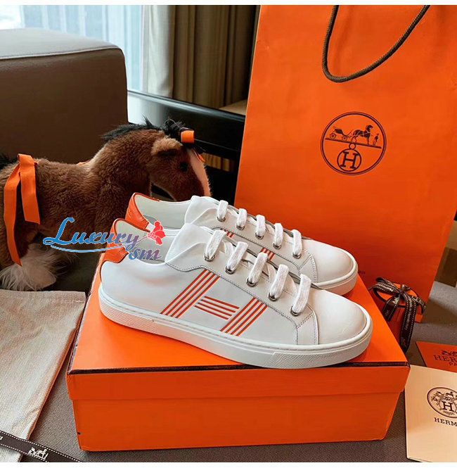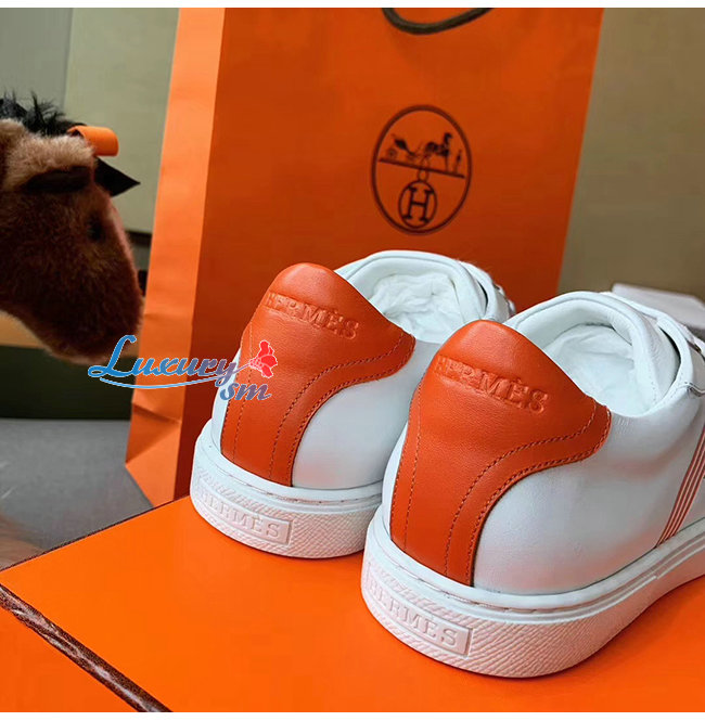 HERMES-H201114 에르메스 화이트/오렌지 카프스킨 Avantage 스니커즈