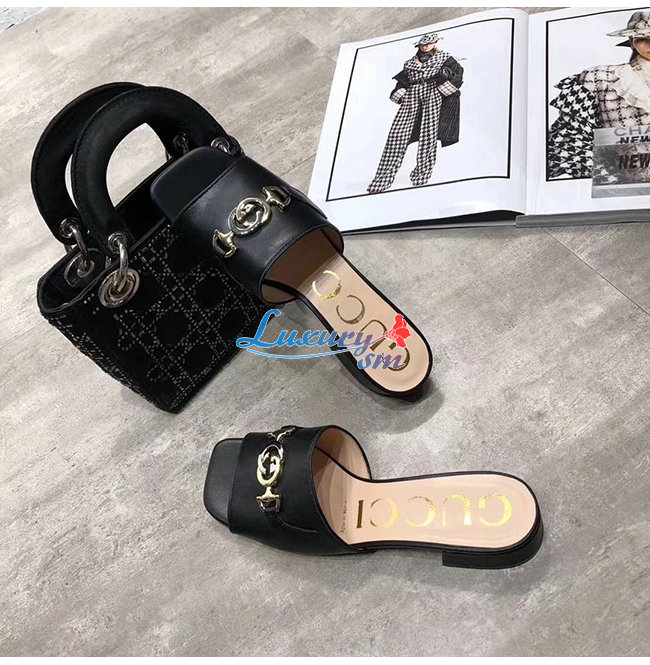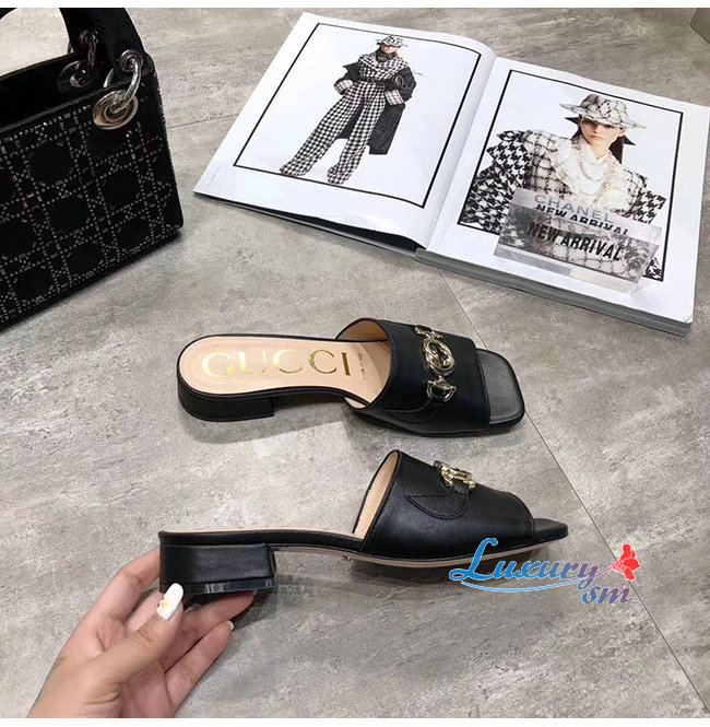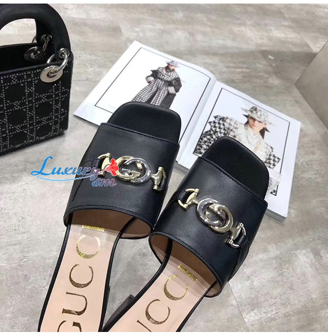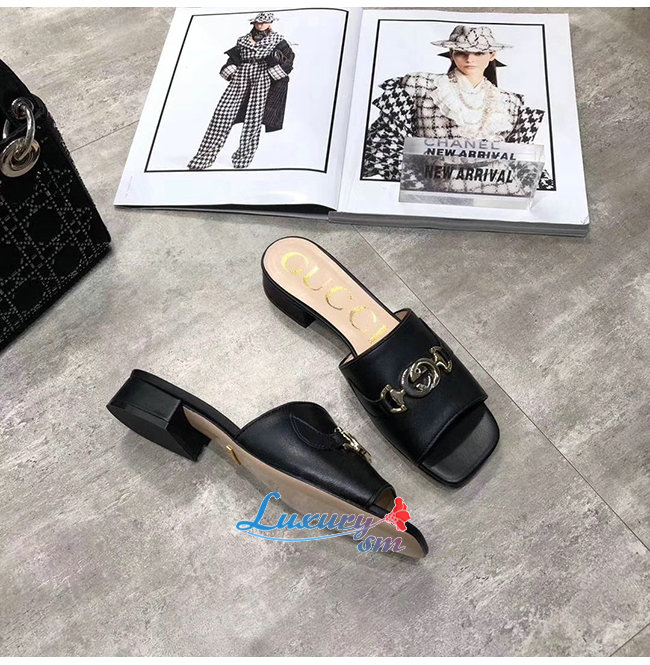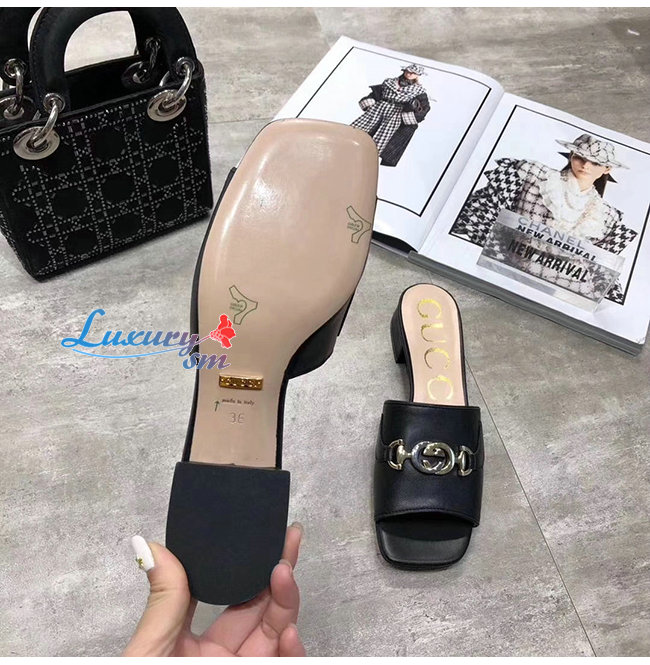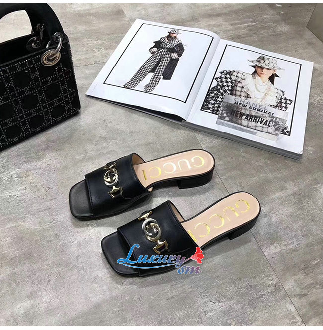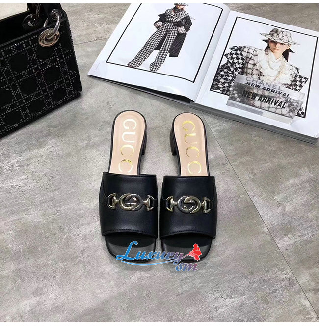 GUCCI-602415 1000 구찌 주미 블랙 가죽 슬라이드 샌들