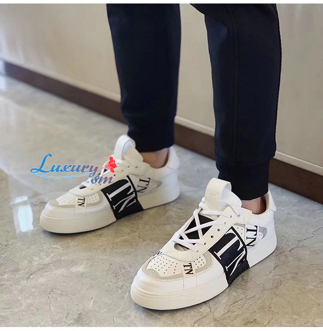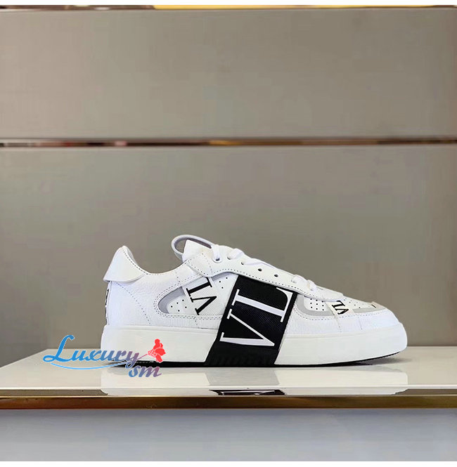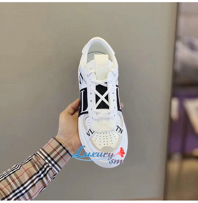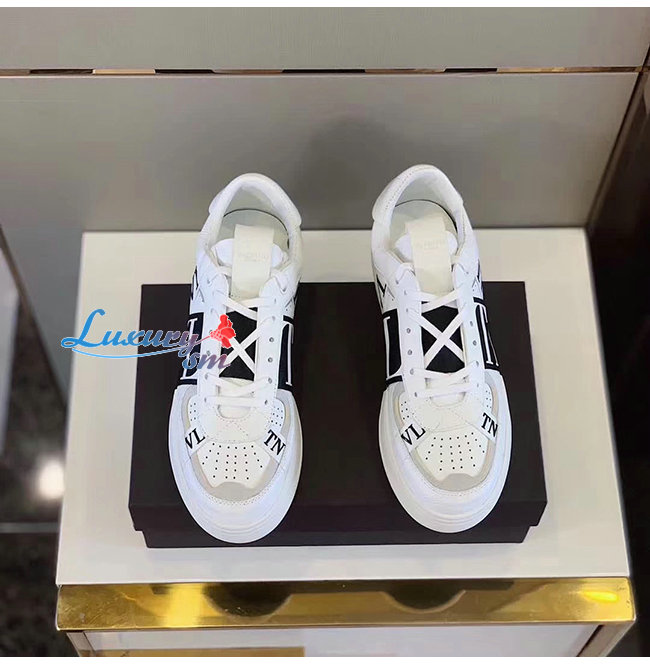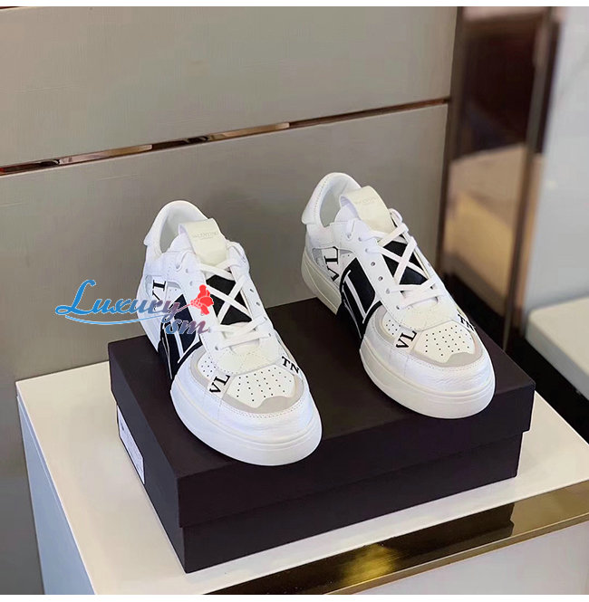 VALENTINO-TY2S0C58 발렌티노 화이트/블랙 송아지 가죽 & 패브릭 밴드 VL7N 스니커즈 남여공용
