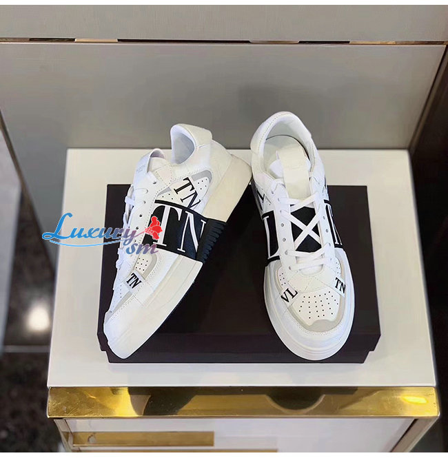 VALENTINO-TY2S0C58 발렌티노 화이트 송아지 가죽 & 패브릭 밴드 VL7N 스니커즈 남여공용