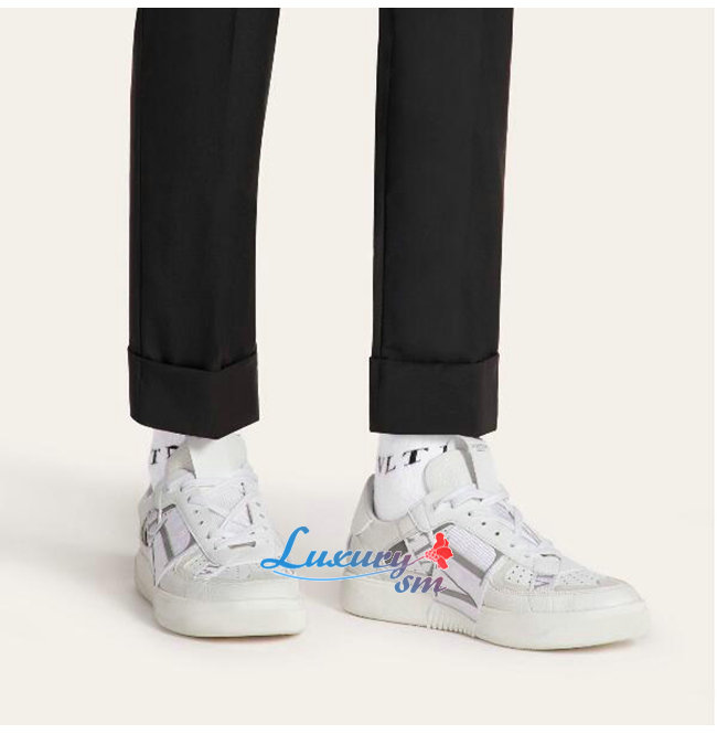 VALENTINO-TY2S0C58 발렌티노 화이트 송아지 가죽 & 패브릭 밴드 VL7N 스니커즈 남여공용