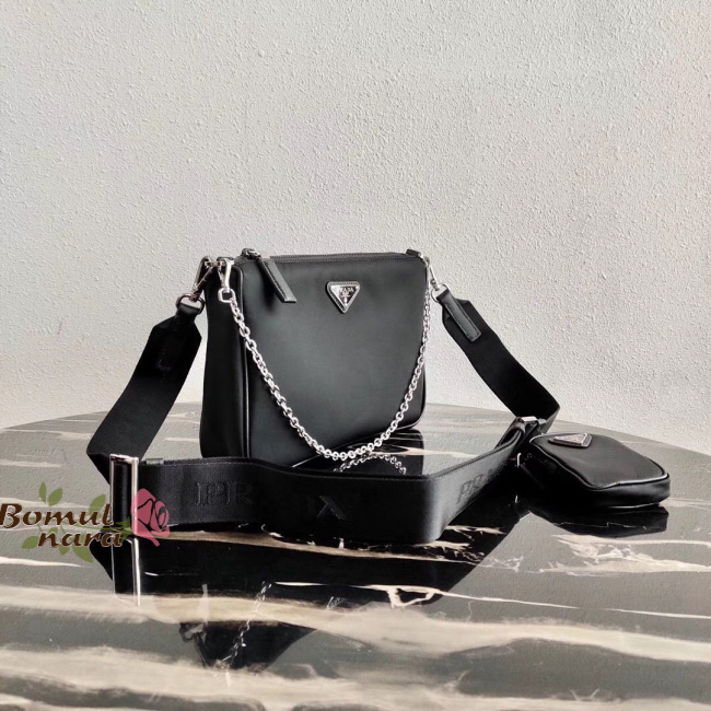 [스페셜오더]PRADA-2VH113 프라다 블랙 트라이앵글 로고 남성 호보 숄더백