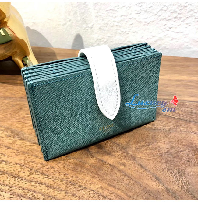 [스페셜오더]CELINE-10B693 셀린느 셀라돈/화이트 카프스킨 아코디언 카드 홀더