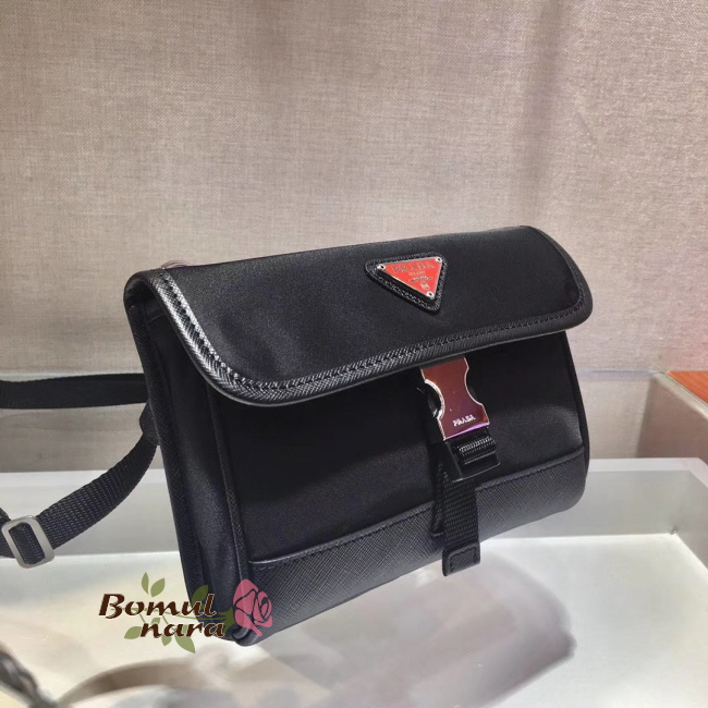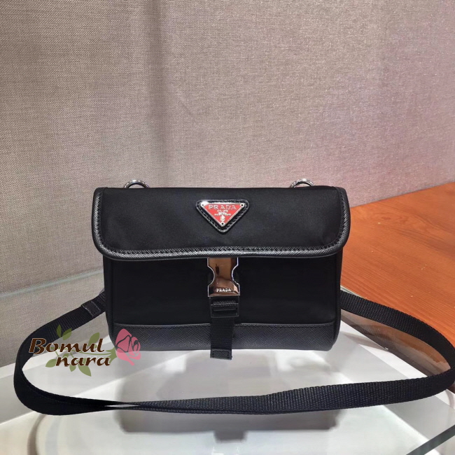[스페셜오더]PRADA-2ZH108 프라다 블랙 나일론&사피아노 숄더 스트랩 휴대폰 케이스