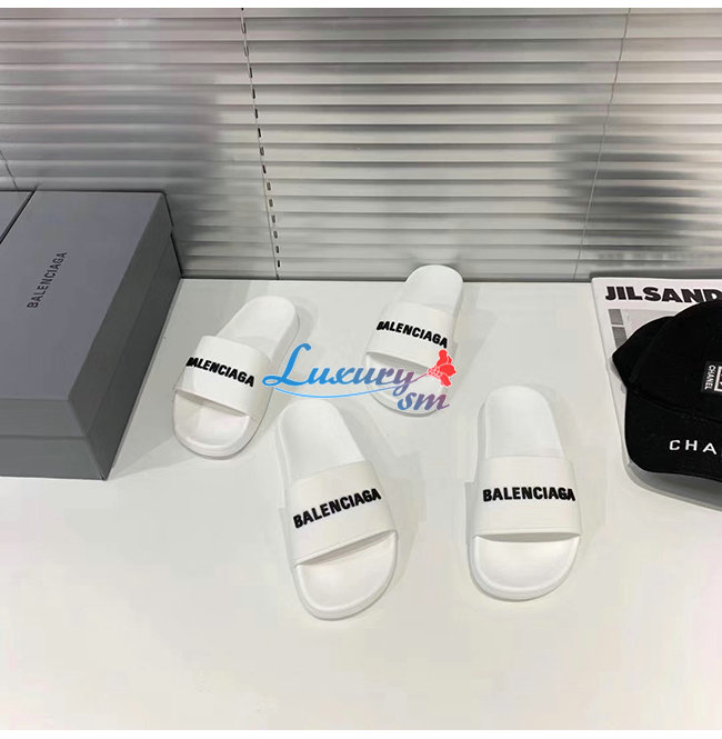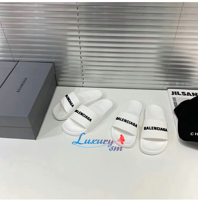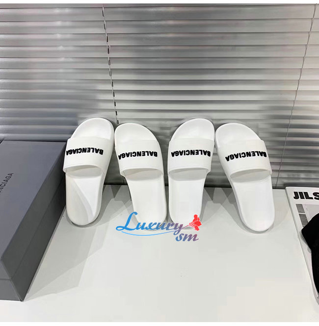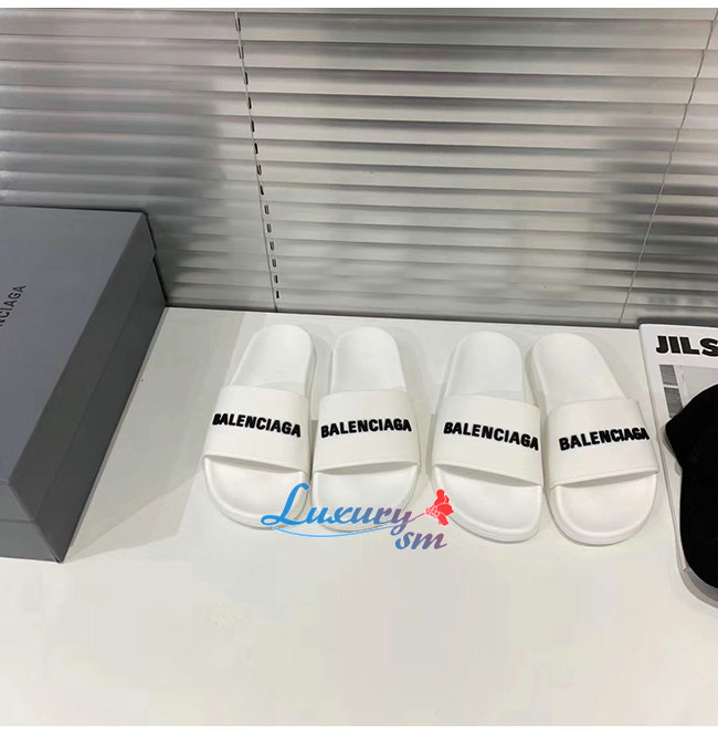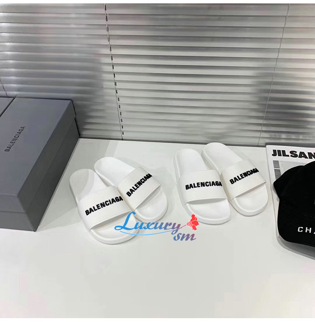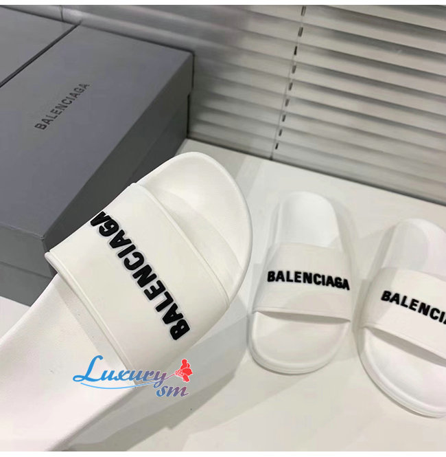 BALENCIAGA-565826 발렌시아가 화이트/블랙 POOL SLIDE 샌들 남여공용