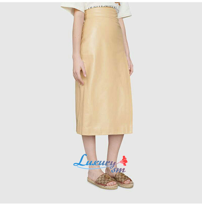 레드 가죽 트리밍 샤이니 골드 톤 메탈 장식 더블 G