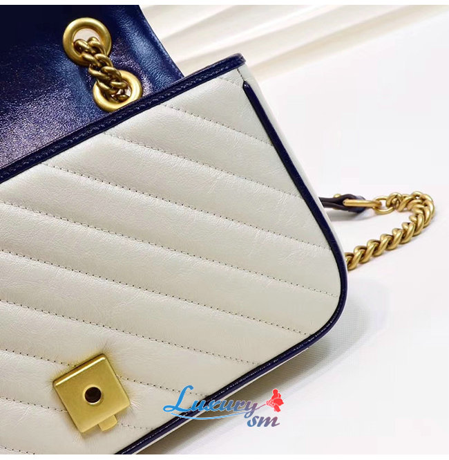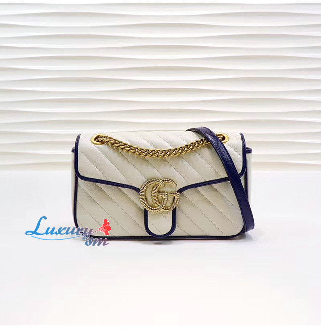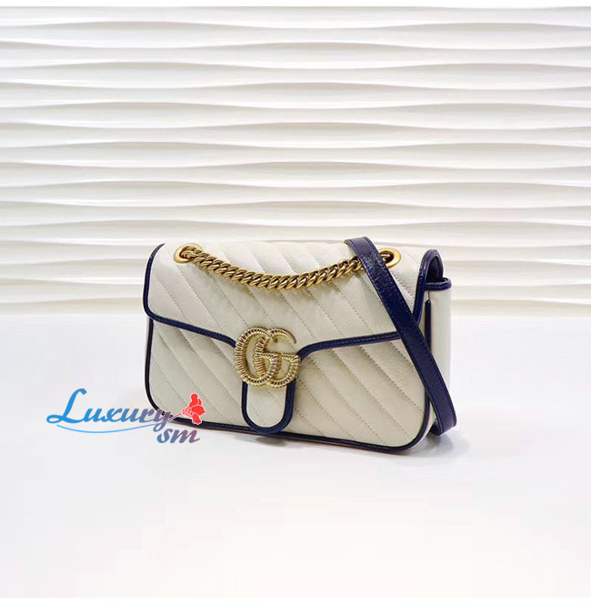 [스페셜오더]GUCCI-443497 9085 구찌 화이트 사선형 마틀라세 퀼트 GG 마몽 스몰 숄더백