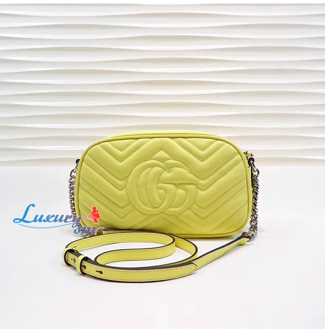 [스페셜오더]GUCCI-447632 7412 구찌 파스텔 옐로우 GG 마몽 스몰 마틀라세 숄더백