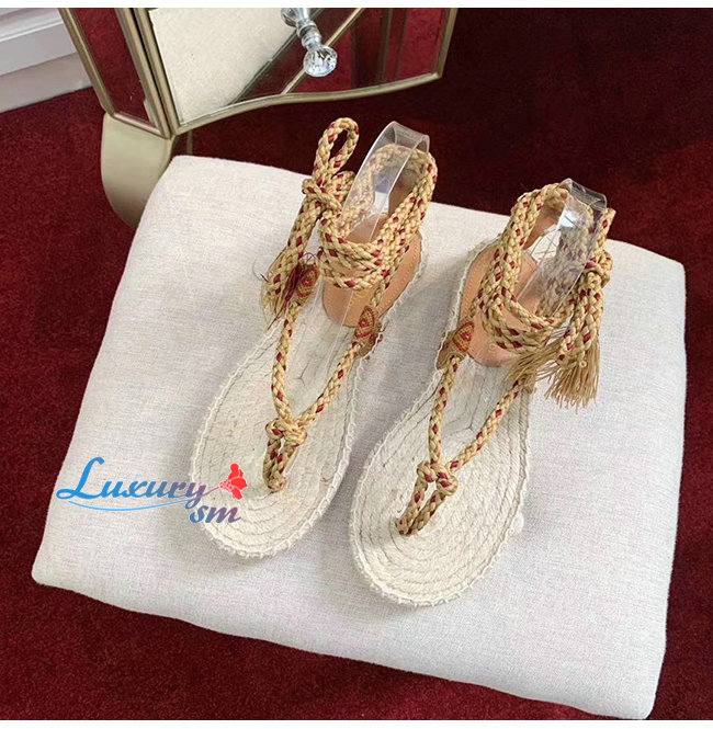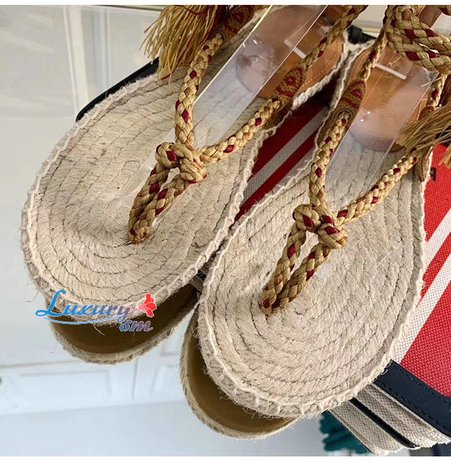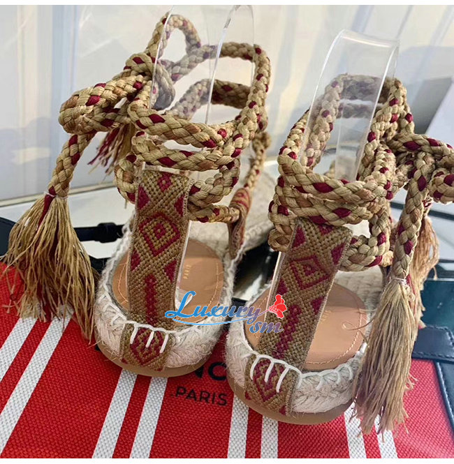 DIOR-KCQ350 디올 크림 DIOREXPRESS 자수 우븐 코튼 샌들