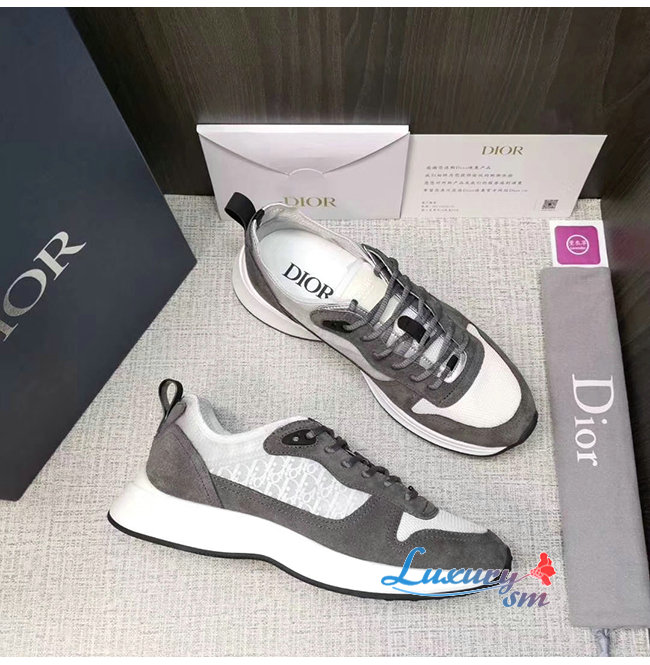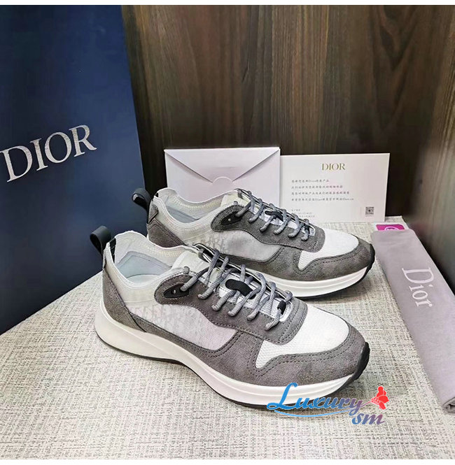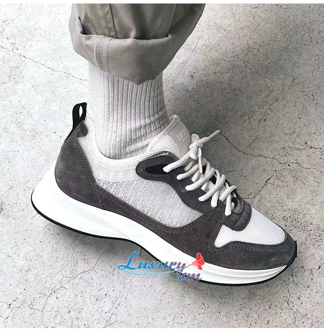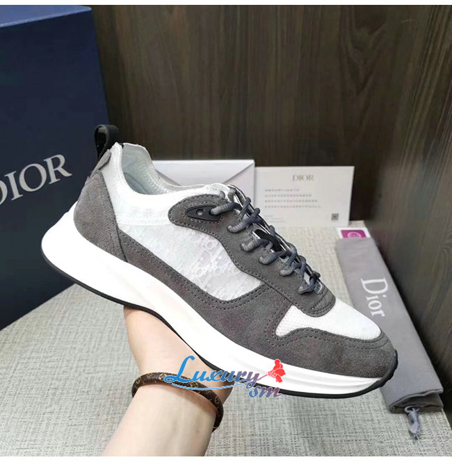 DIOR-3SN259 디올 그레이 DIOR OBLIQUE 패턴 스웨이드 B25 러너 스니커즈 남성용